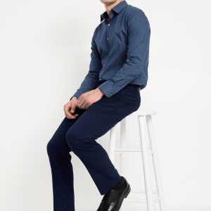 Slim Fit Pro Signature Performance Dress Shirt: 2″ pointed collar, built-in collar stays, long sleeves, buttoned cuffs, full-button front, breathable, quick drying, go-dry wicks moisture, #418101