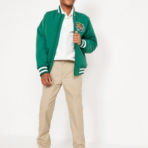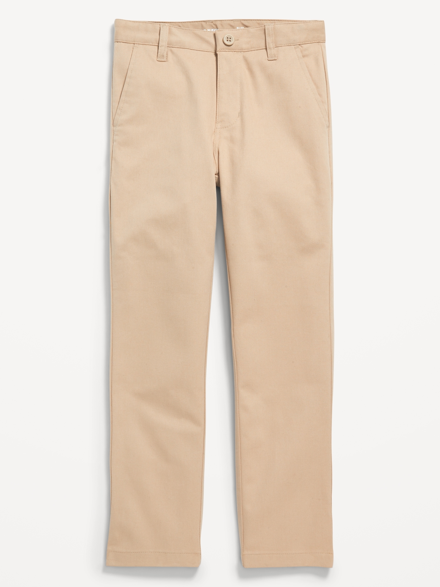 Slim School Uniform Chino Pants for Boys: Uniform Guarantee: Uniforms may be returned for a full refund with the original receipt for 365 days from the date of purchase.interior adjustable waistband, hook-and-bar closure in sizes 5-8, regular button keyhole closure in sizes 10-20, zip fly, diagonal on-seam pockets at front, welt pocket at back, reinforced knees for added durability, #665608