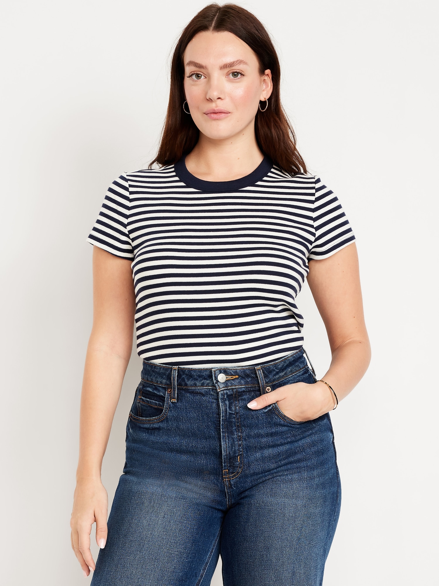 Snug Striped T-Shirt: A skimming fit that hugs your bod just right.crew neck, short sleeves, #811395
