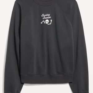 SoComfy Oversized Graphic Raglan Sweatshirt: The perfect-weight, never-taking-this-off fleece.graphic varies by color, crew neck, long raglan sleeves, rib-knit trim, pullover style, #824098
