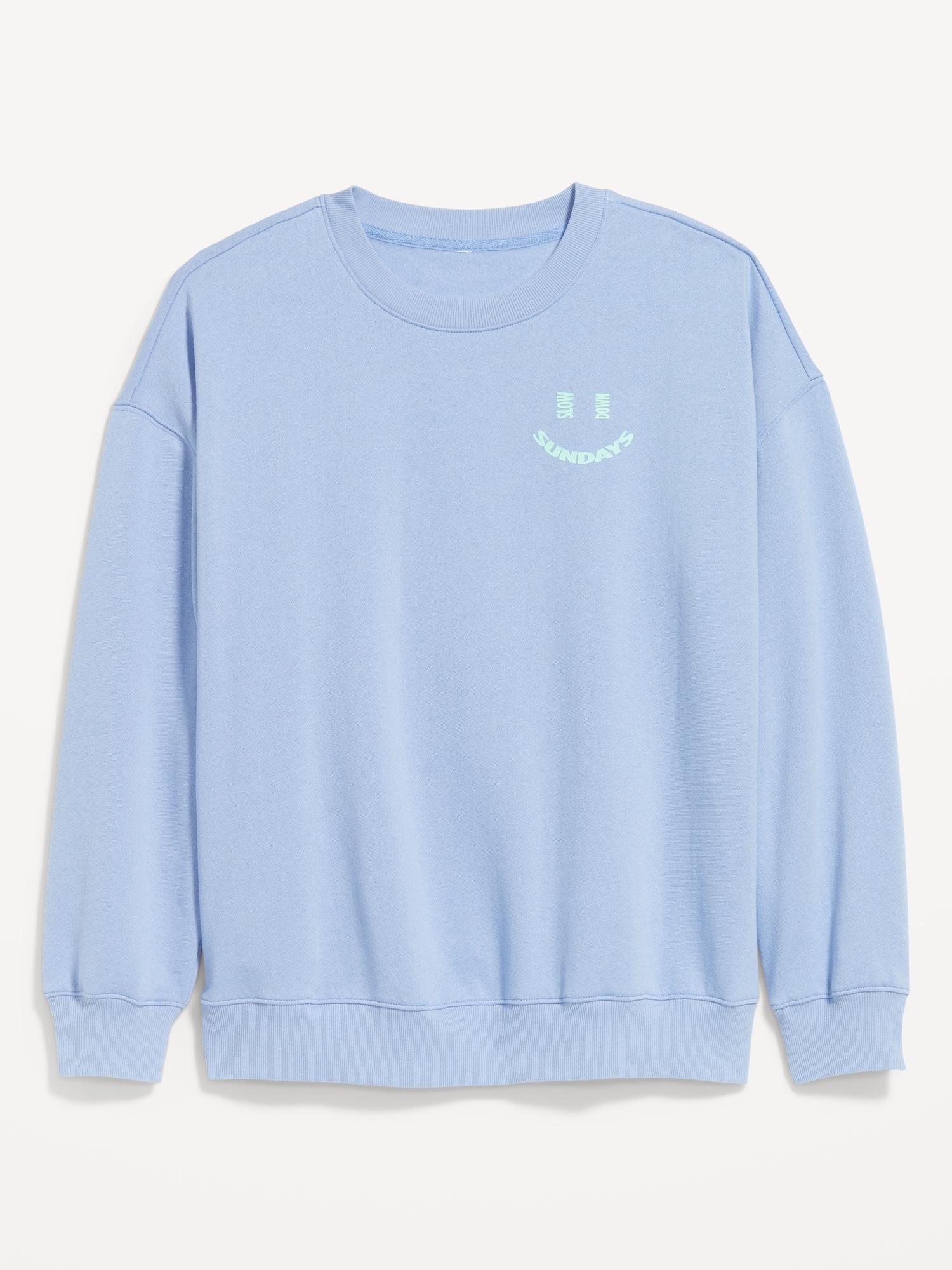 SoComfy Oversized Graphic Sweatshirt: The perfect-weight, never-taking-this-off fleece.crew neck, drop-shoulder sleeves, rib-knit trim, graphics vary, #865011