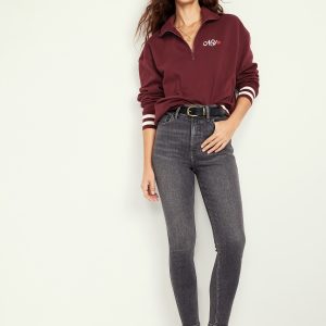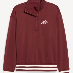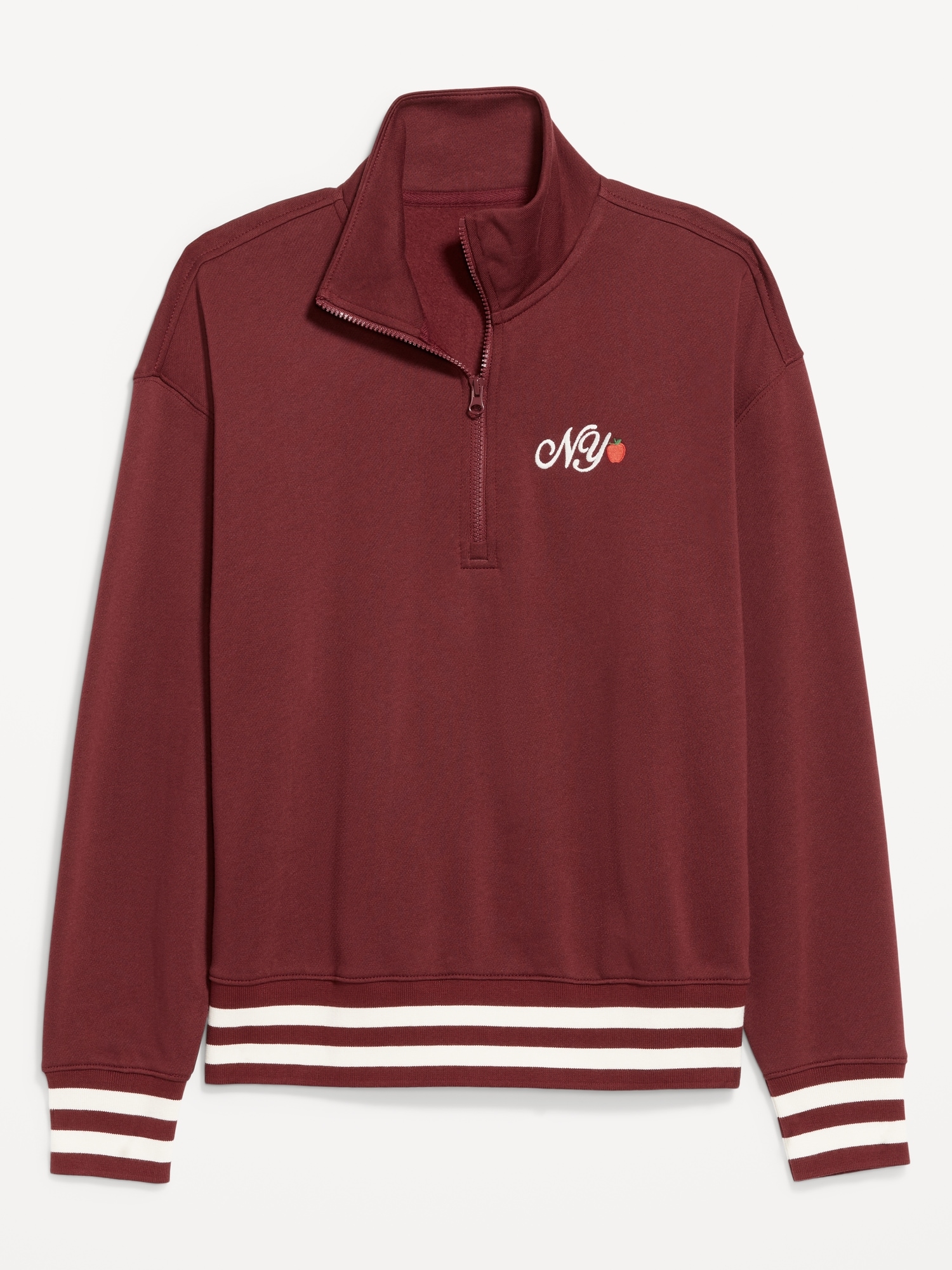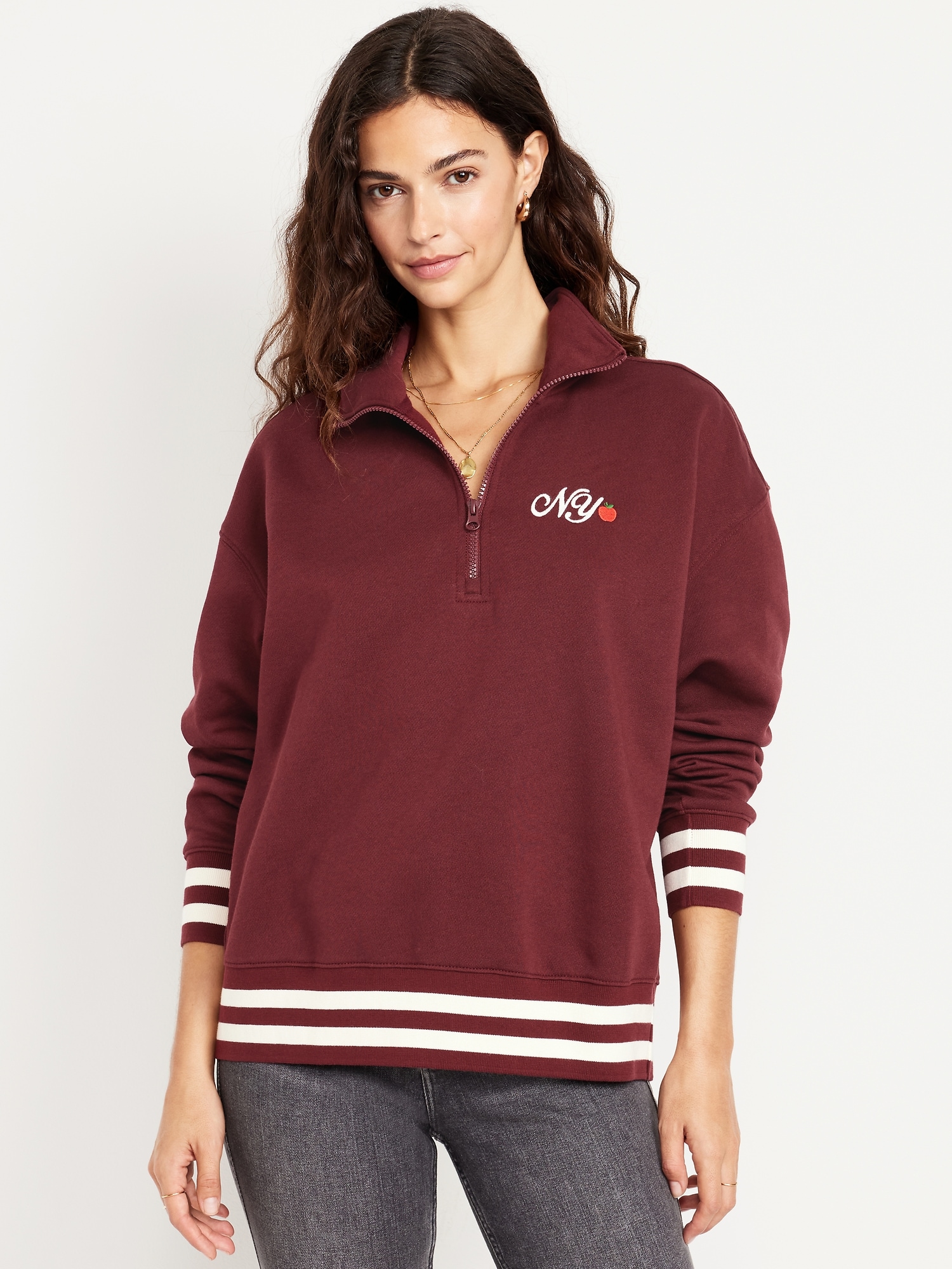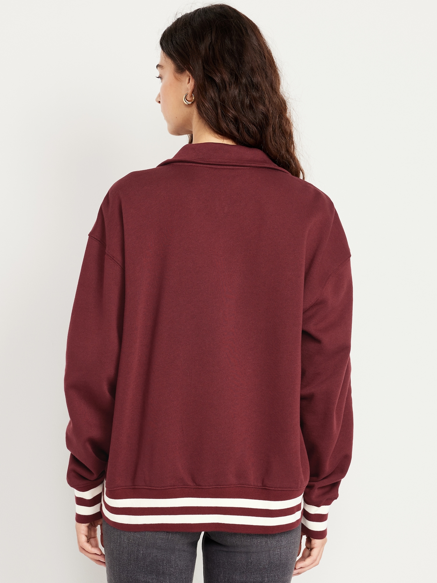 SoComfy Oversized Half-Zip Sweatshirt: The perfect-weight, never-taking-this-off fleece.mock neck, drop-shoulder sleeves, half-zip front, contrasting tipped trim, pullover style, #801579
