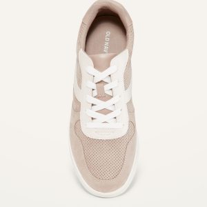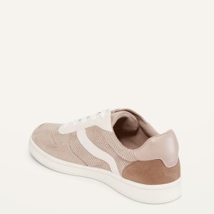 Soft-Brushed Faux-Suede Sneakers: lace-up front, cushioned memory foam insoles, contrasting ankle collar, #673656