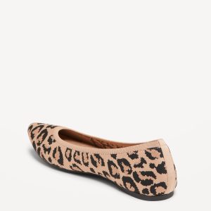 Soft-Knit Pointed-Toe Ballet Flats: soft-knit upper, pointed toe, quilted faux-suede foot bed, textured thermoplastic rubber outsole, 1/4″ heel, #795204