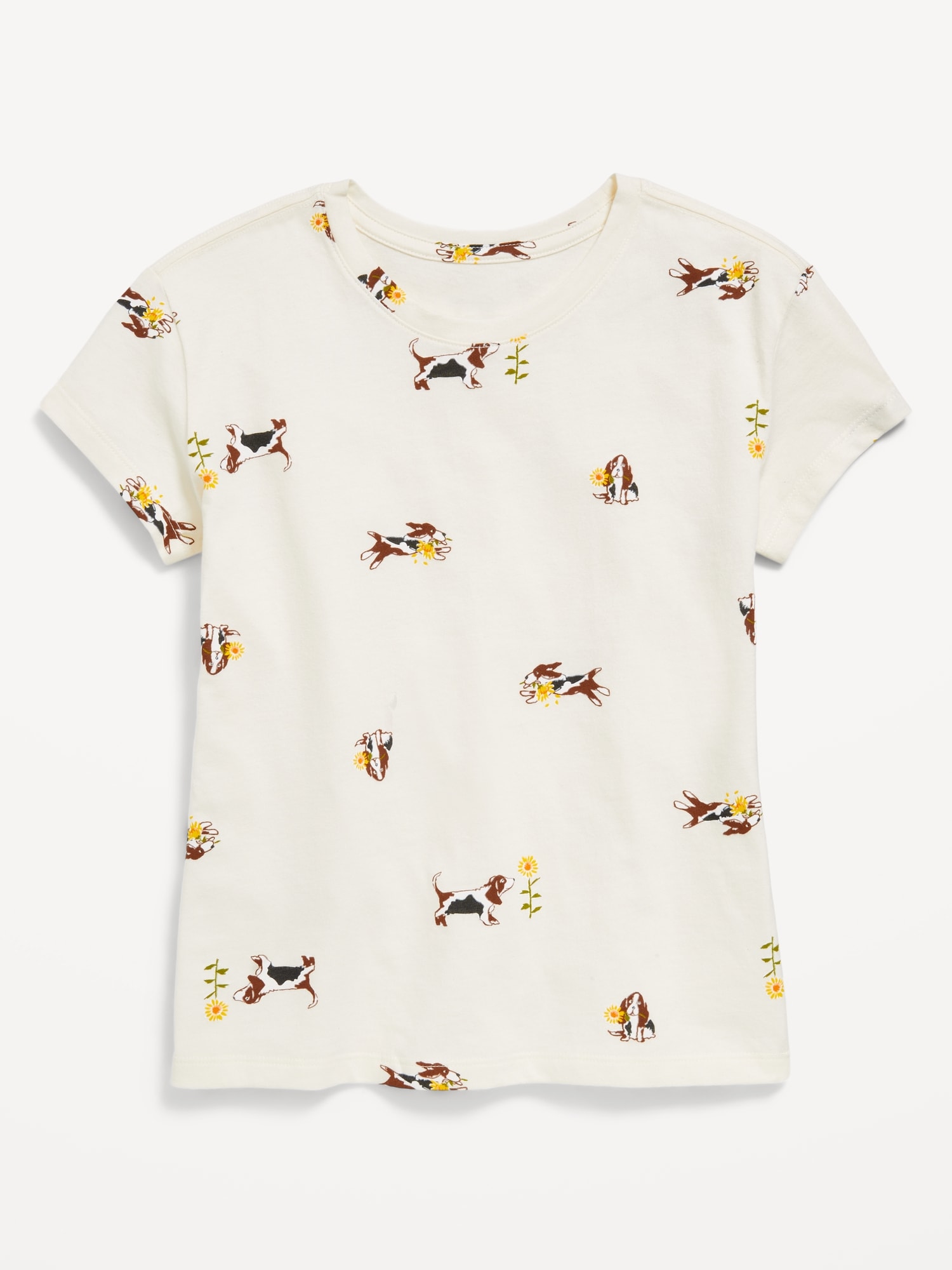 Softest Short-Sleeve Printed T-Shirt for Girls: scoop neck, short sleeves, drop shoulders, all-over print, #699733