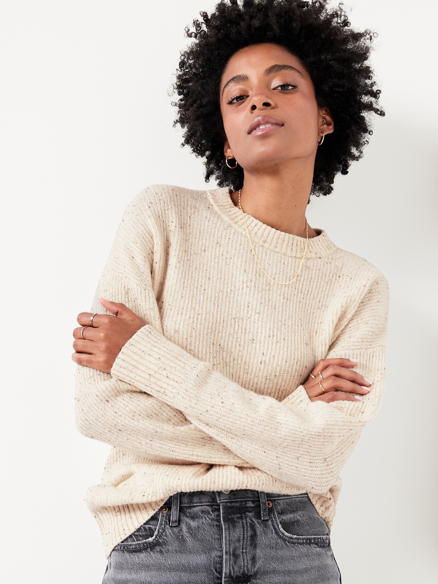 SoSoft Crew-Neck Sweater: Featuring SoSoft. Literally “so soft” it’s got cashmere jealous.crew neck, drop-shoulder sleeves, rib-knit trim, pullover style, #784458