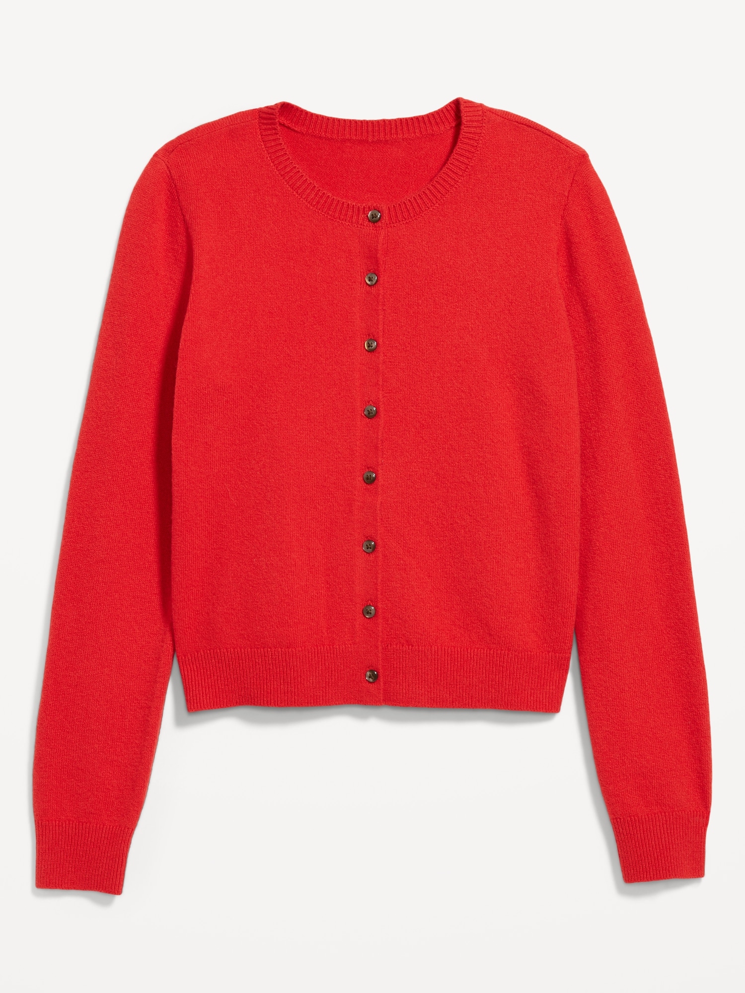 SoSoft Cropped Cardigan Sweater: Featuring SoSoft. Literally “so soft” it’s got cashmere jealous.crew neck, long sleeves, full-button front, #785112