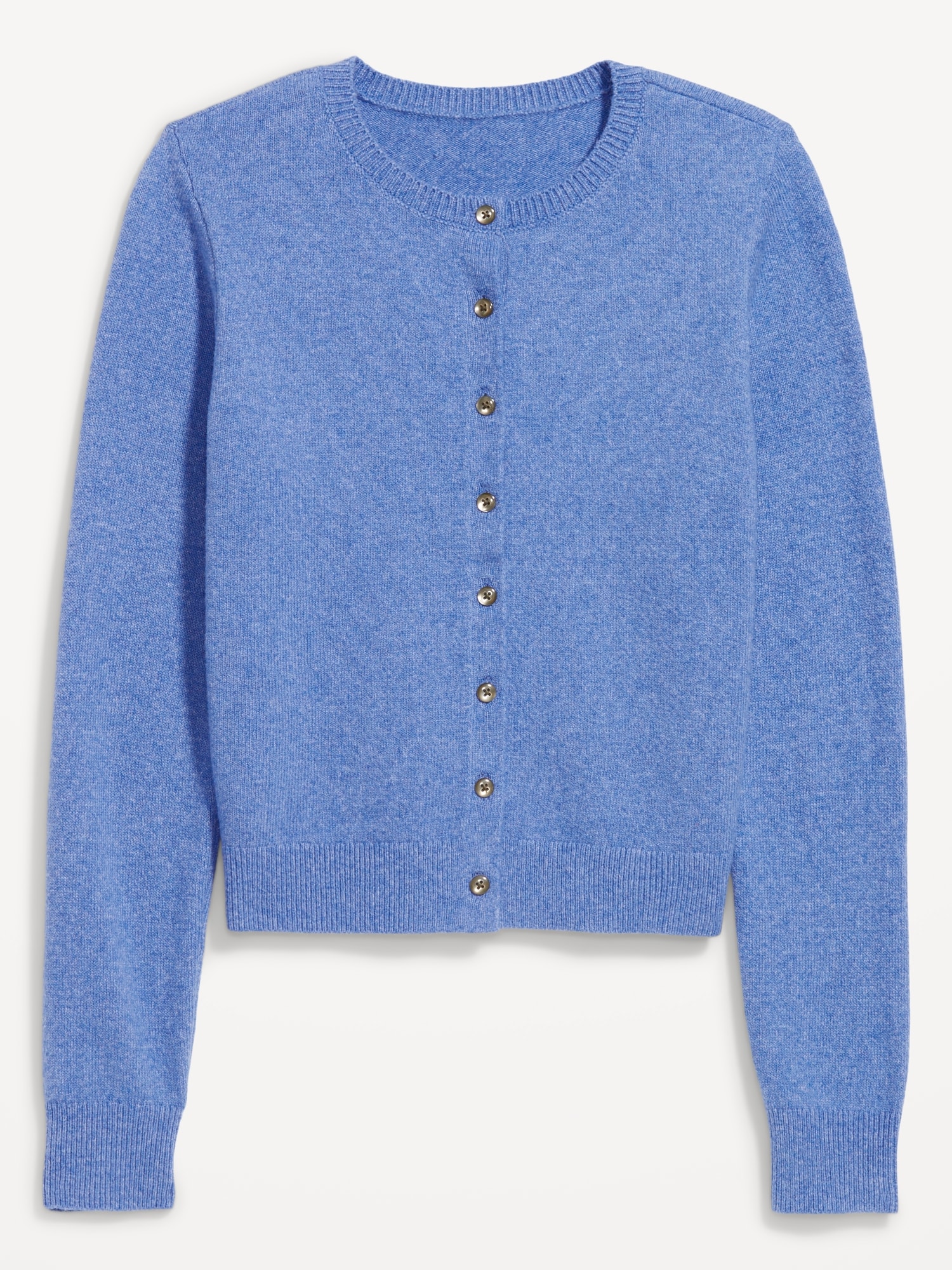 SoSoft Cropped Cardigan Sweater: Featuring SoSoft. Literally “so soft” it’s got cashmere jealous.crew neck, long sleeves, full-button front, #785112