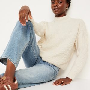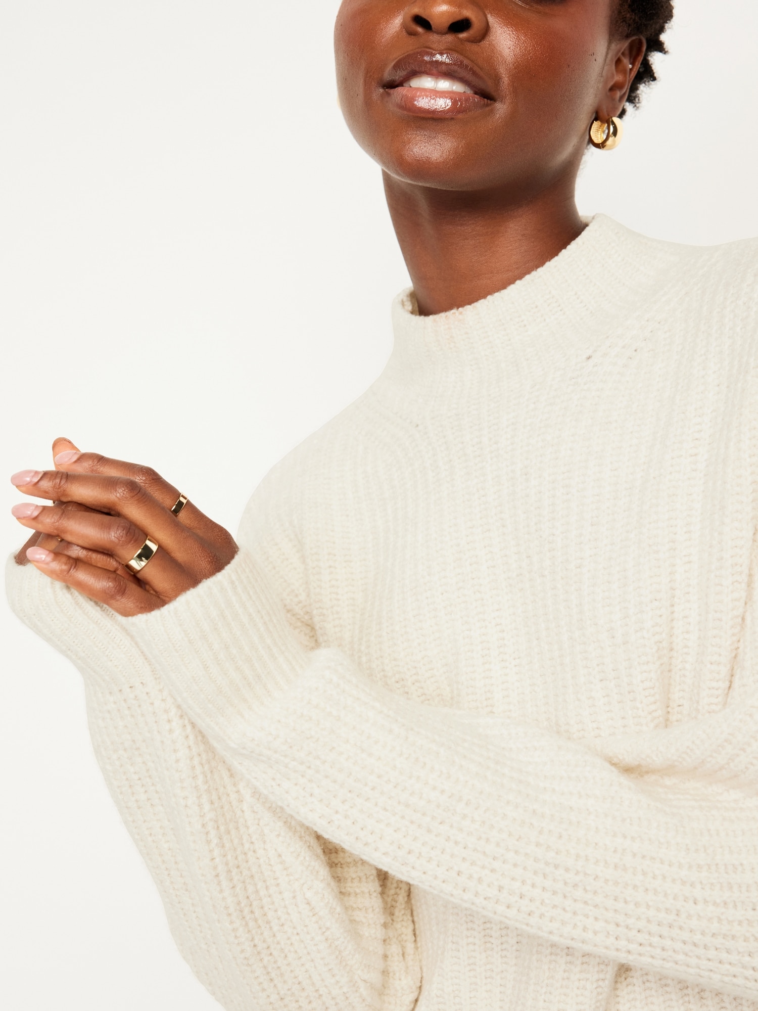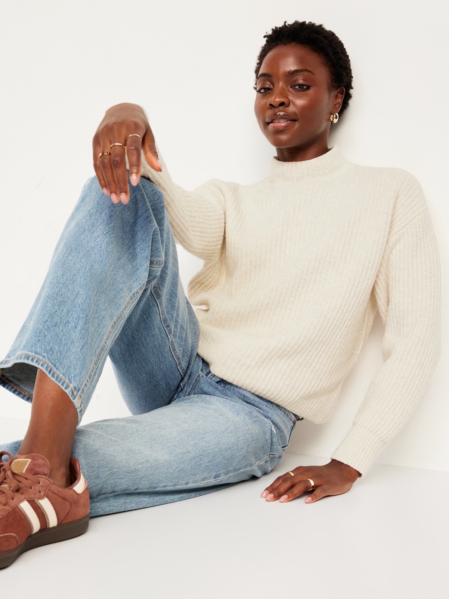 SoSoft Cropped Mock-Neck Sweater: Featuring SoSoft. Literally “so soft” it’s got cashmere jealous.mock neck, drop-shoulder sleeves, pullover style, #497762
