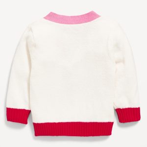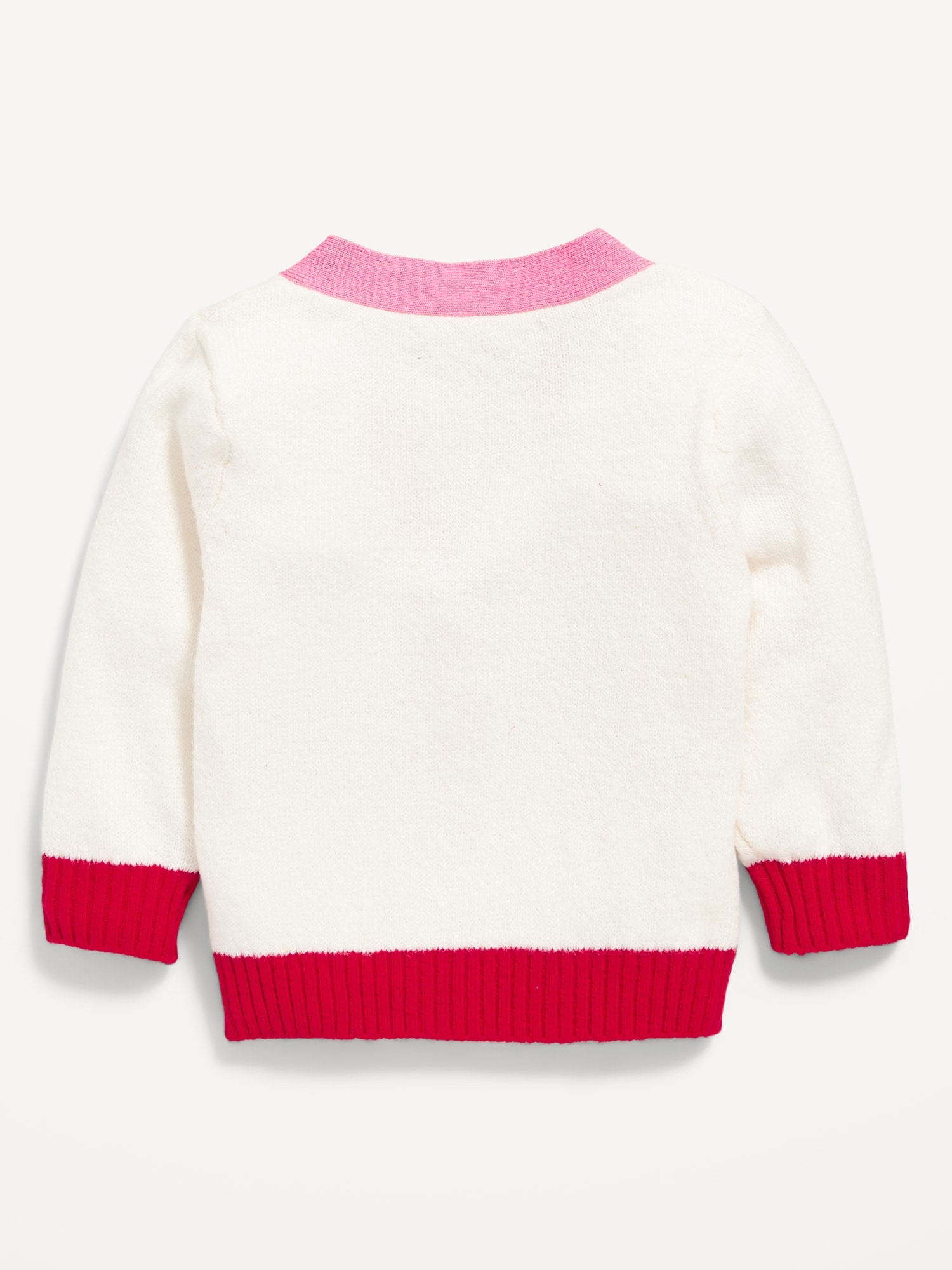 SoSoft Graphic Cardigan Sweater for Baby: v neck, long sleeves, three-button placket, color block, #789180