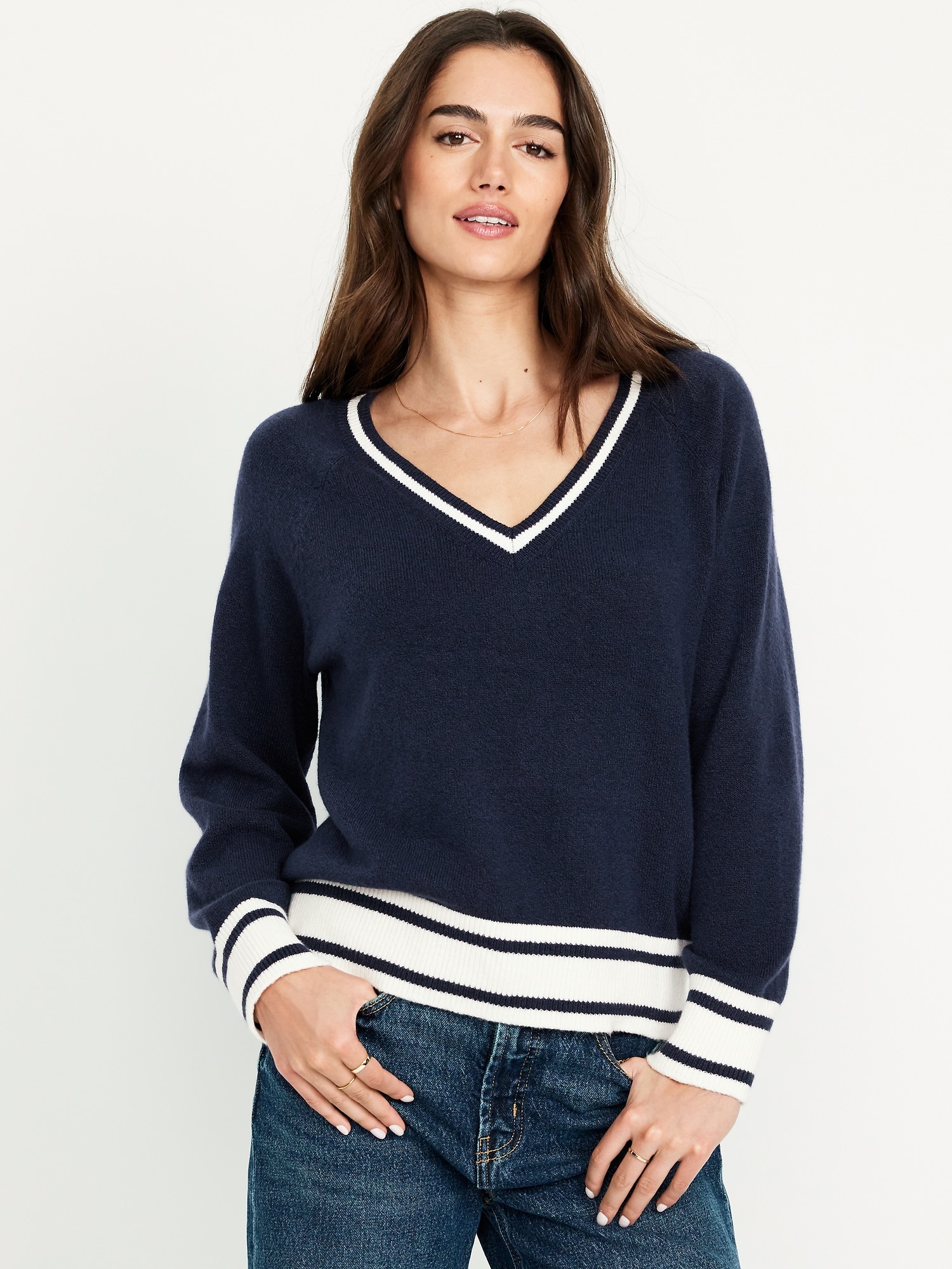 SoSoft Loose V-Neck Sweater: Featuring SoSoft. Literally “so soft” it’s got cashmere jealous.v-neck, long sleeves, rib-knit trim, pullover style, #784446