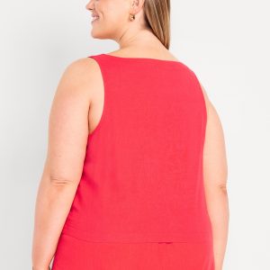 Square-Neck Linen-Blend Crop Tank Top: square neck, sleeveless, darted bust, #756733