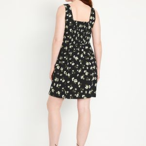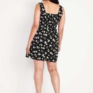 Square-Neck Linen-Blend Floral Mini Dress: square neck, wide straps, smocked back, princess seams, mini length, gingham print, #708450
