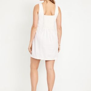 Square-Neck Linen-Blend Mini Dress: square neck, wide straps, smocked back, princess seams, mini length, gingham print, #708450