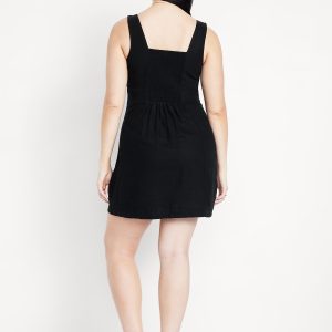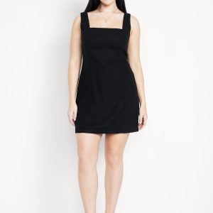 Square-Neck Linen-Blend Mini Dress: square neck, wide straps, smocked back, princess seams, mini length, gingham print, #708450