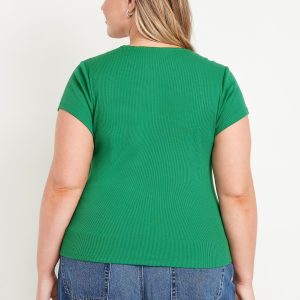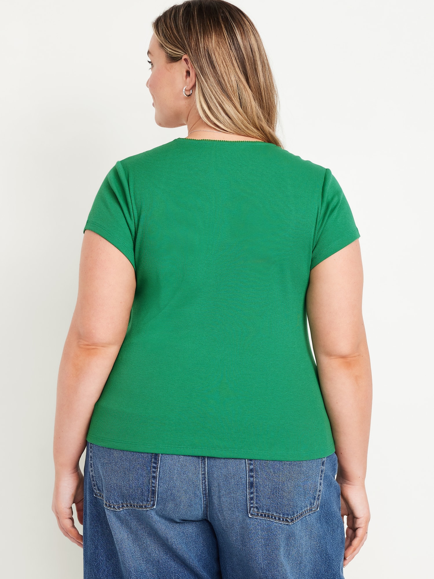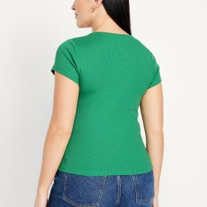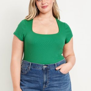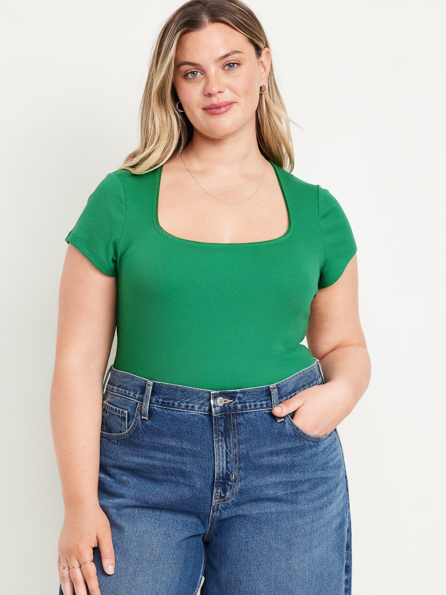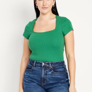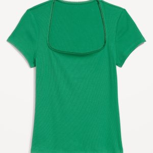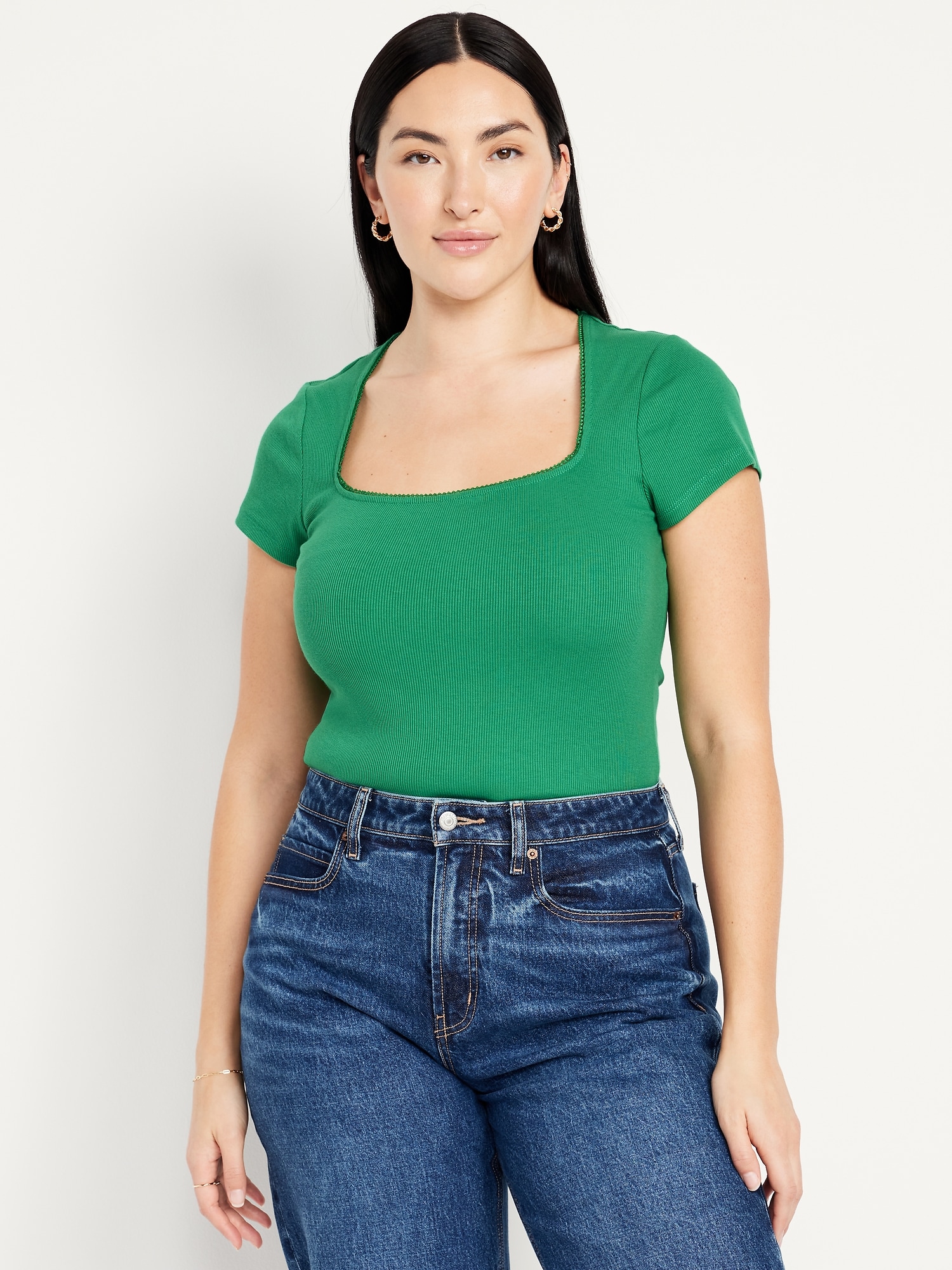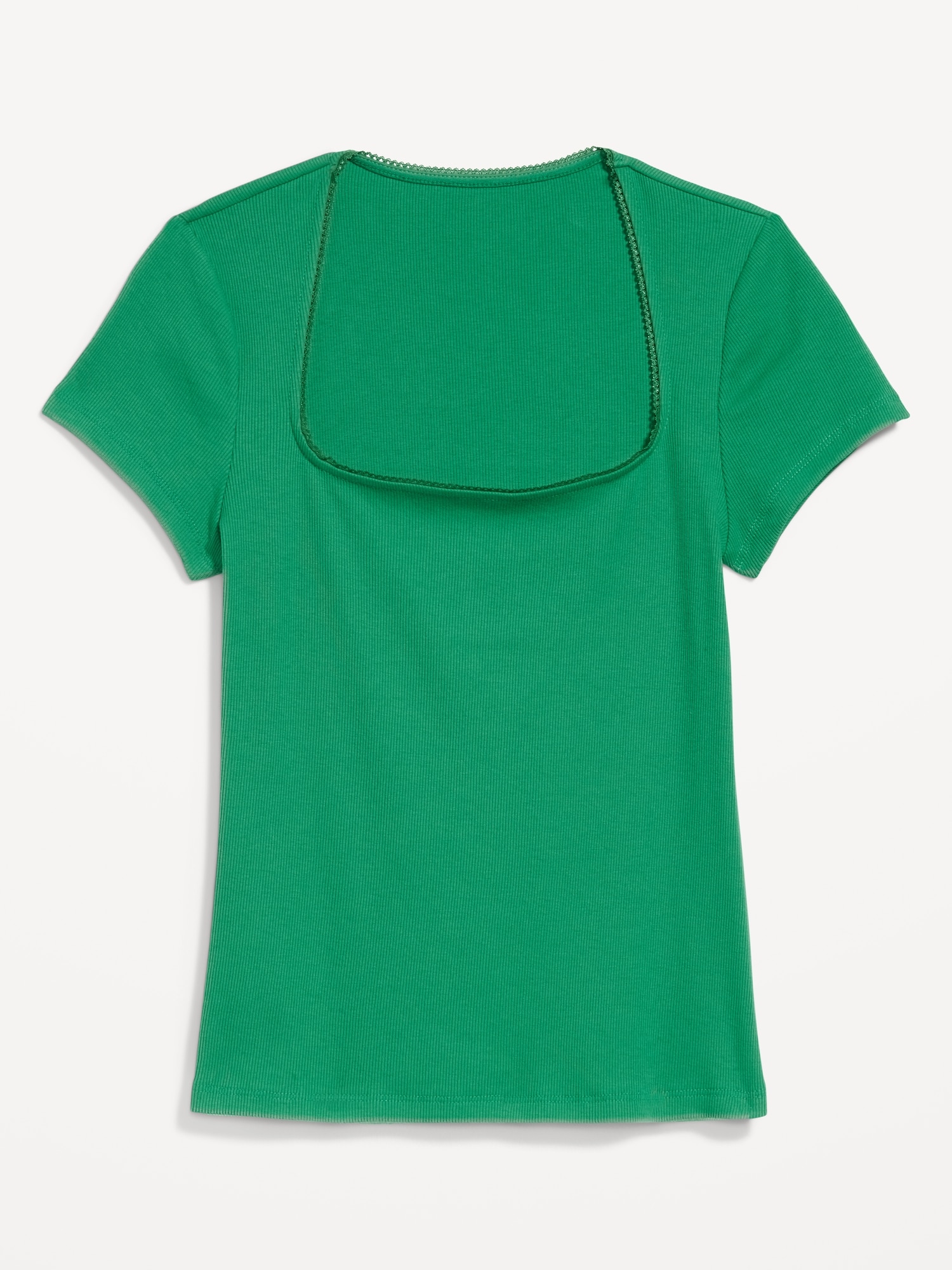 Square-Neck Ribbed T-Shirt: square neck, short sleeves, #749343