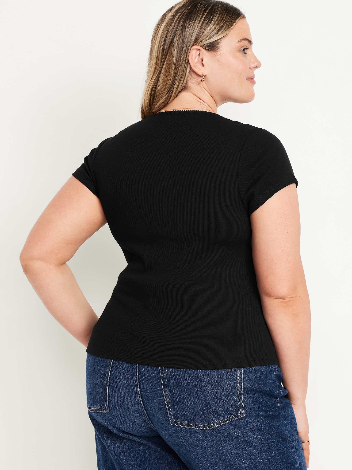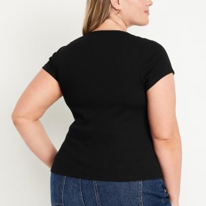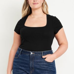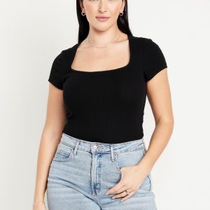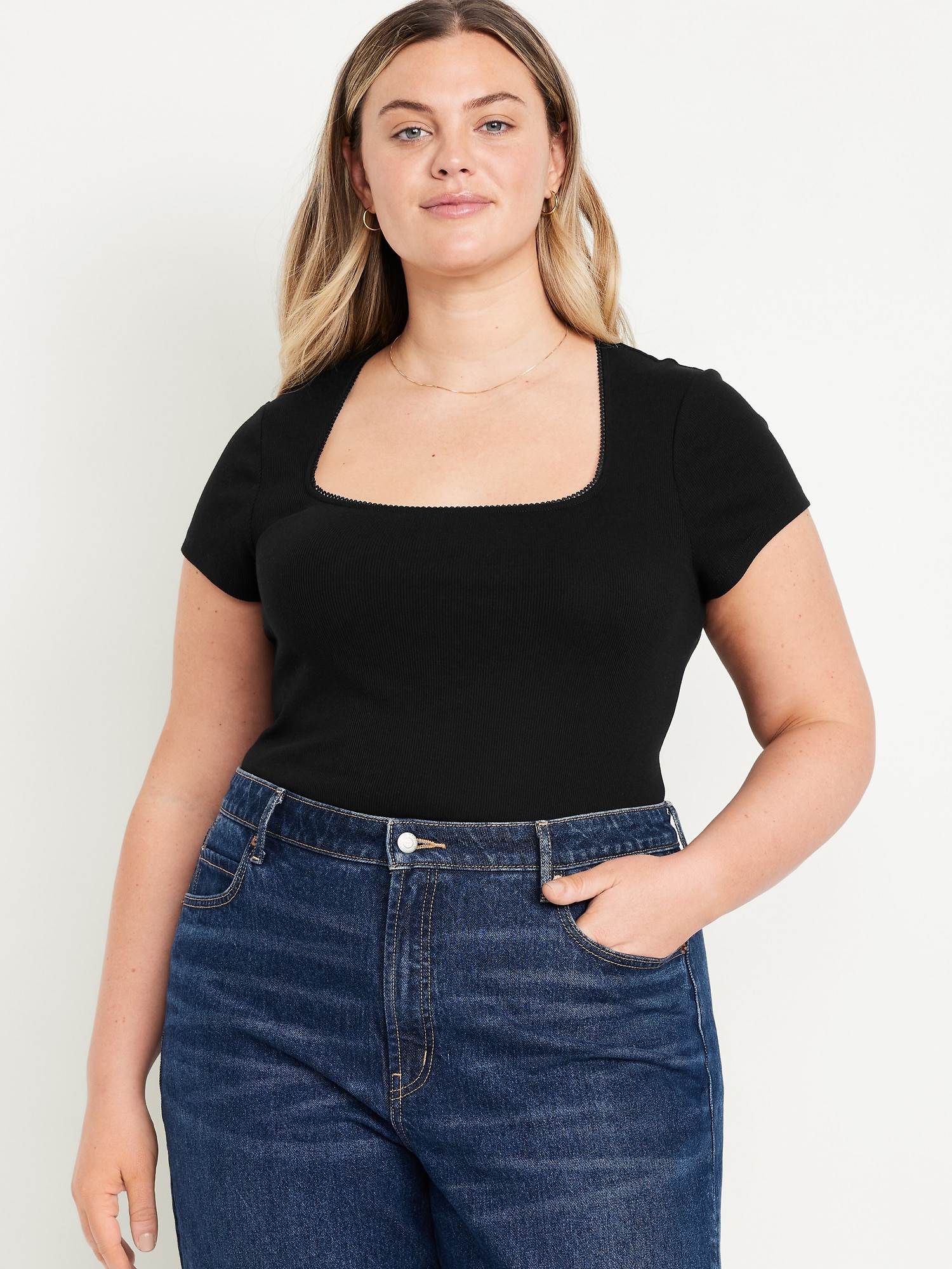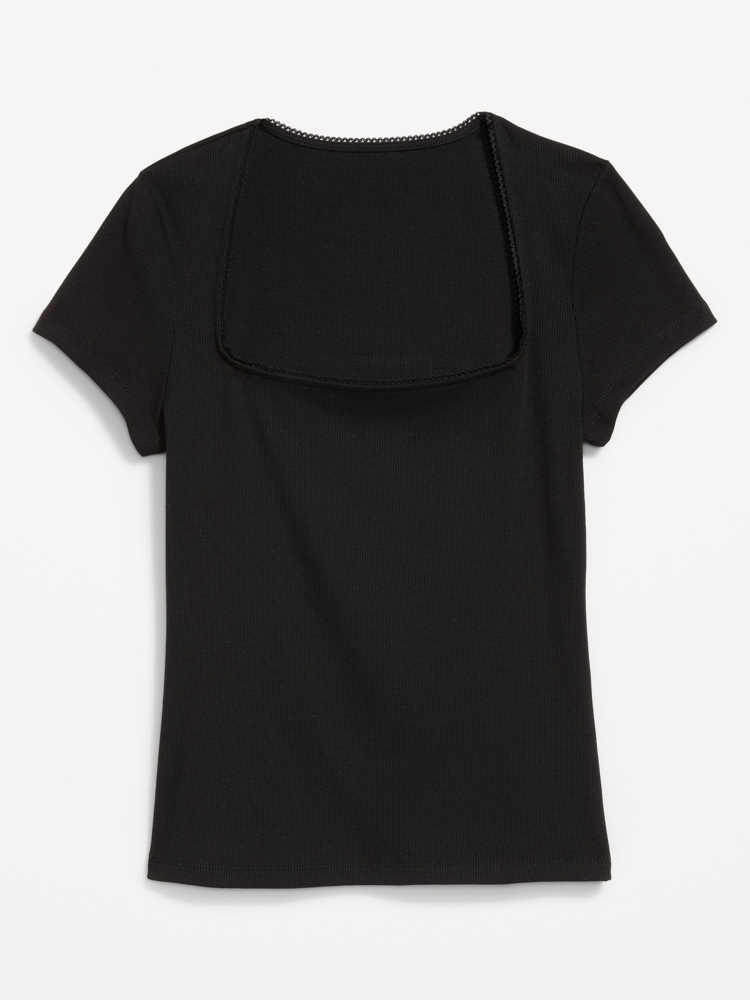 Square-Neck Ribbed T-Shirt: square neck, short sleeves, #749343