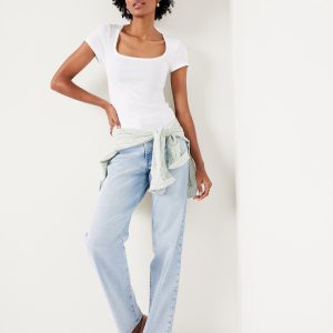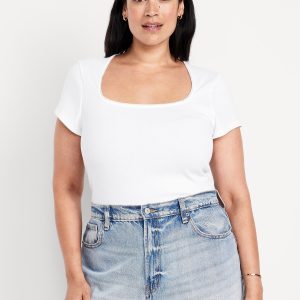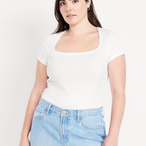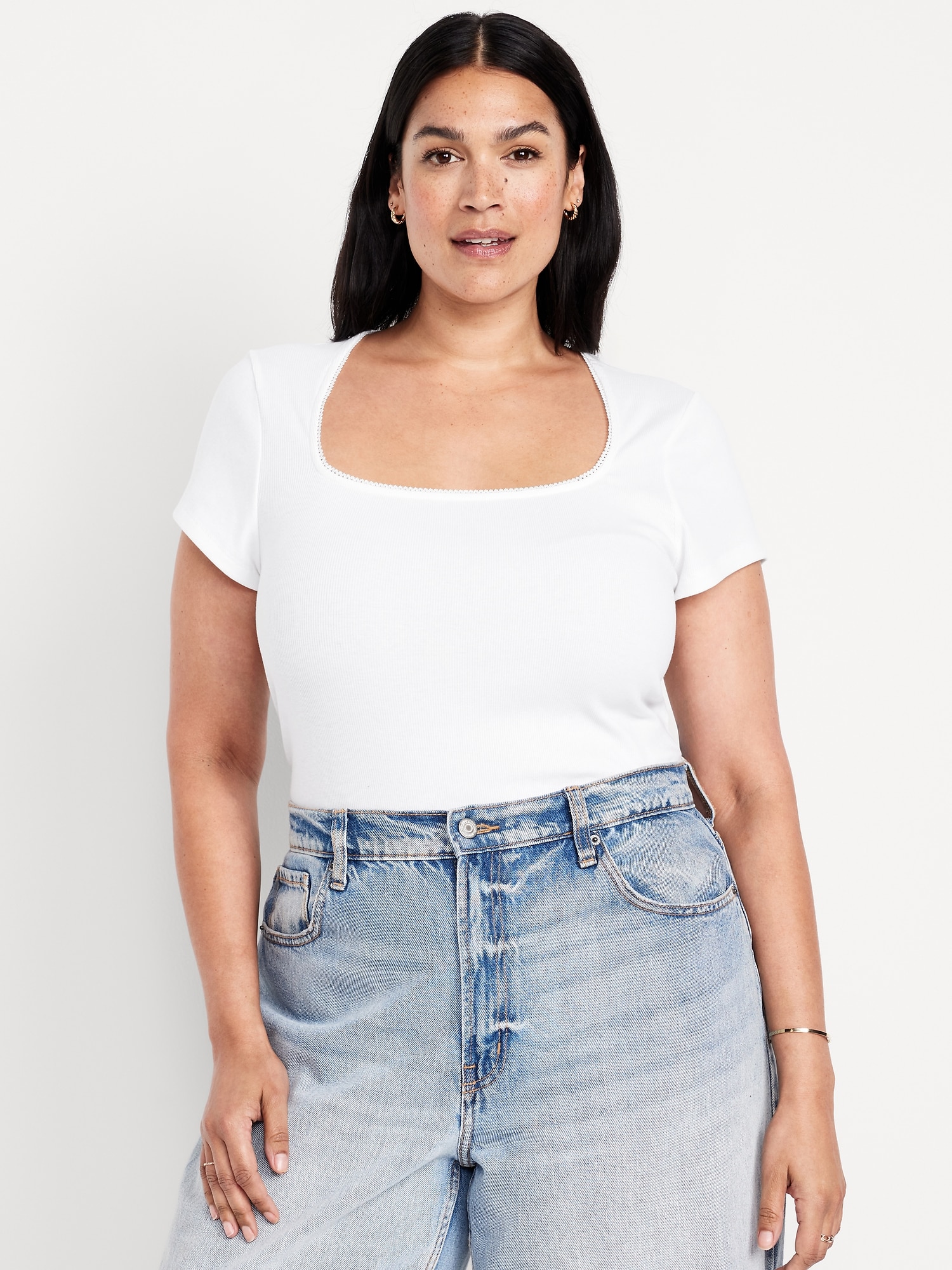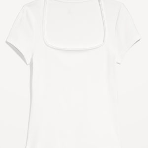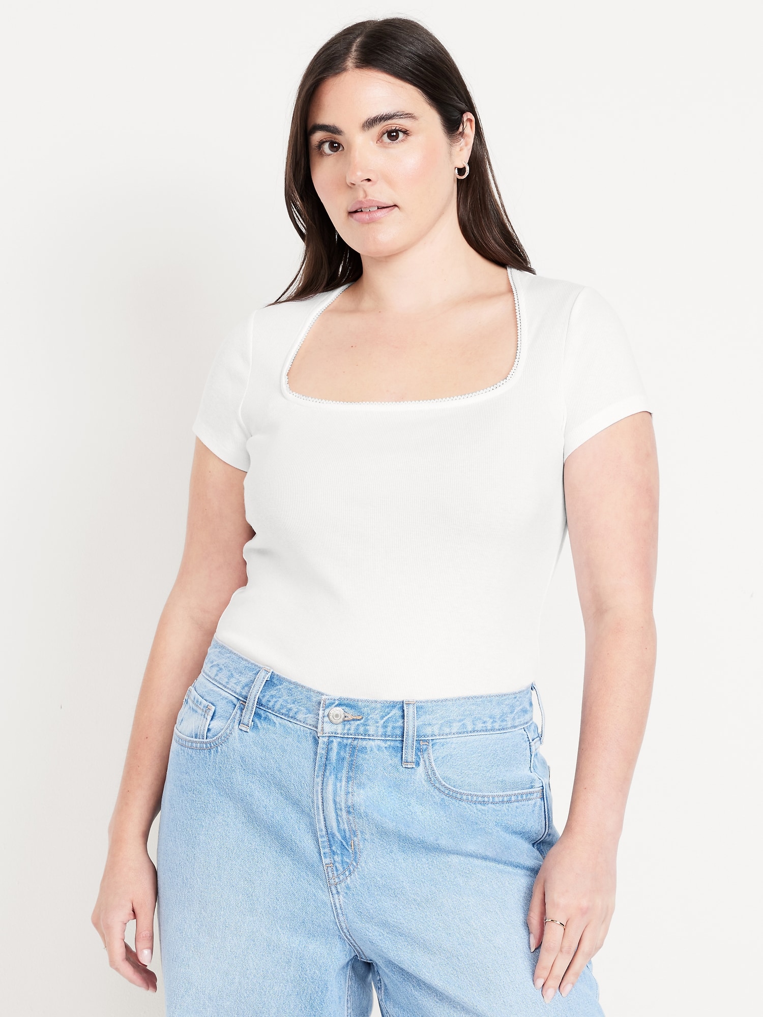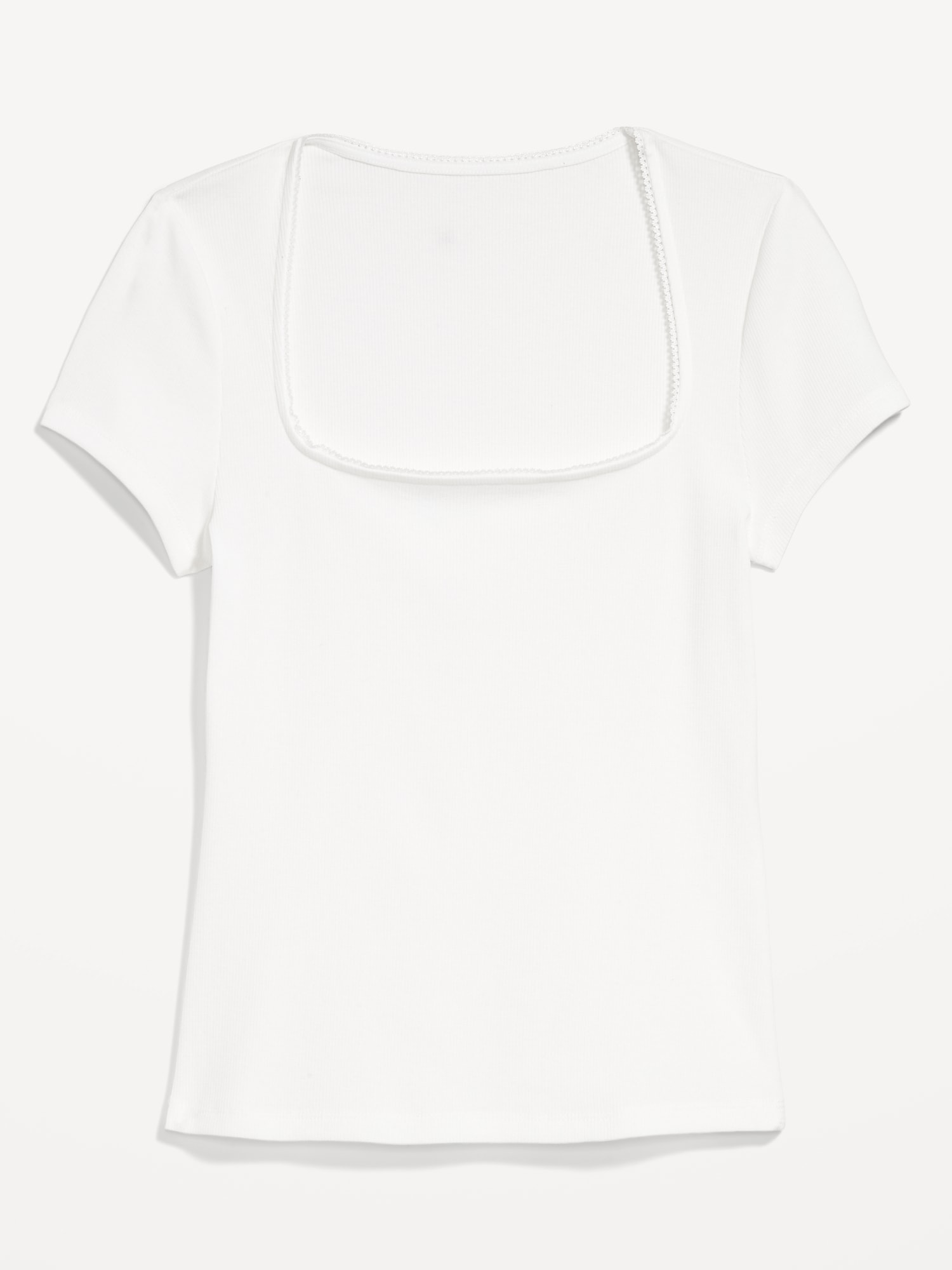 Square-Neck Ribbed T-Shirt: square neck, short sleeves, #749343