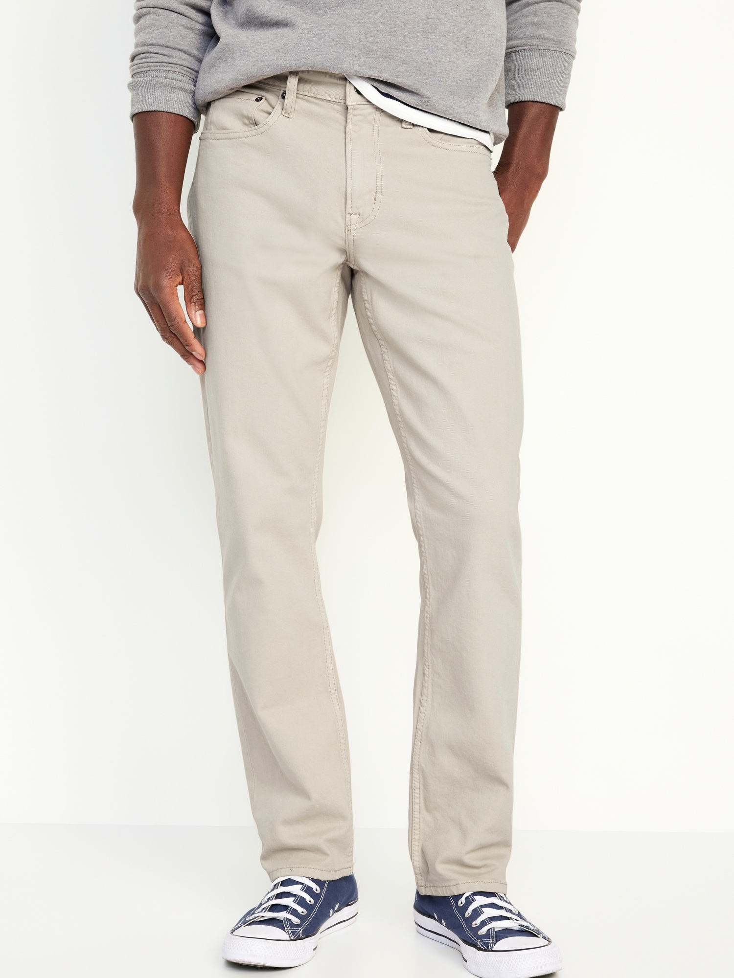 Straight Five-Pocket Pants: Relaxed through the hip, with a straight leg.button front, zip fly, front scoop pockets and coin pocket, back patch pockets, #753303