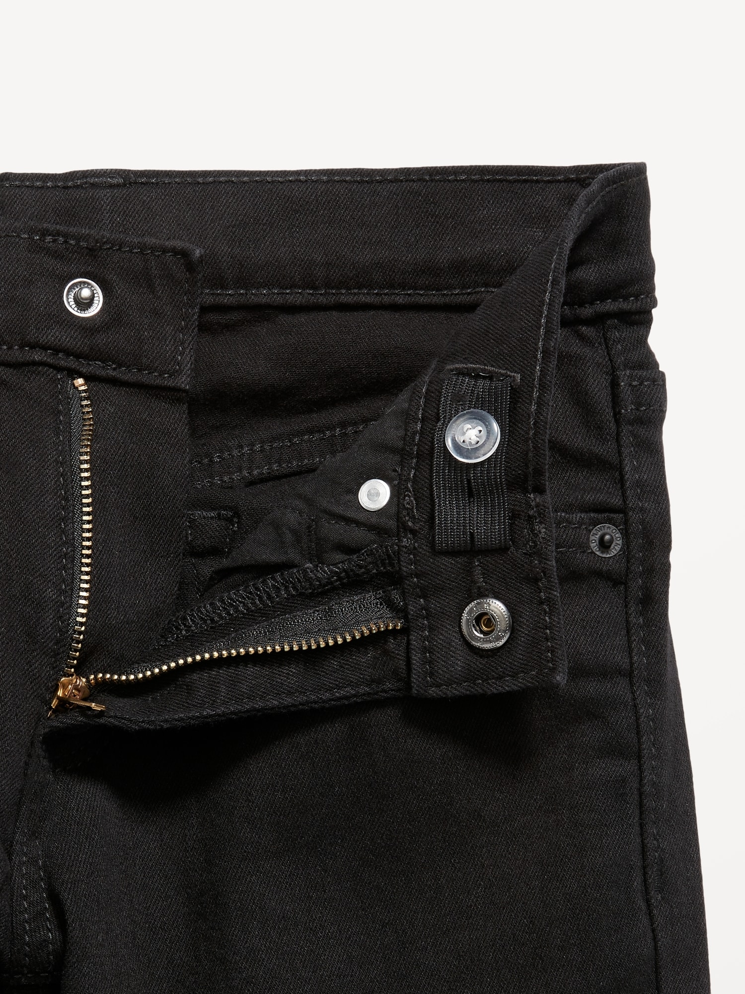 Straight-Leg Built-In Flex Black Jeans for Boys: Comfy, durable, wear-on-repeat faves.interior adjustable waistband, button closure, zip fly, scoop pockets and coin pocket, patch pockets at back, #814201