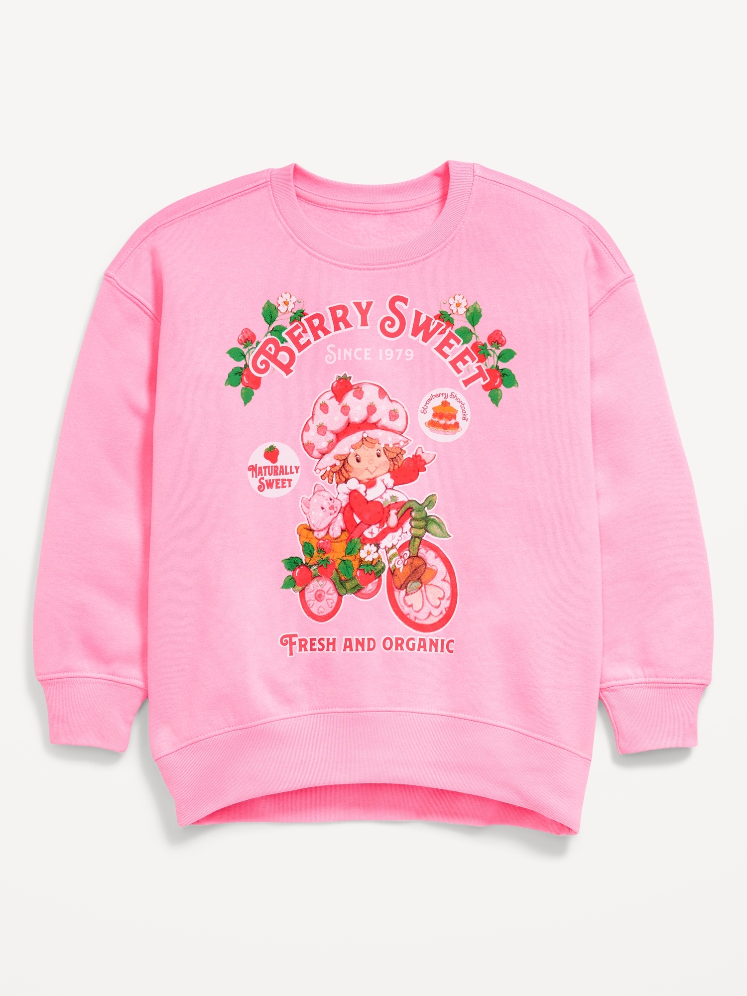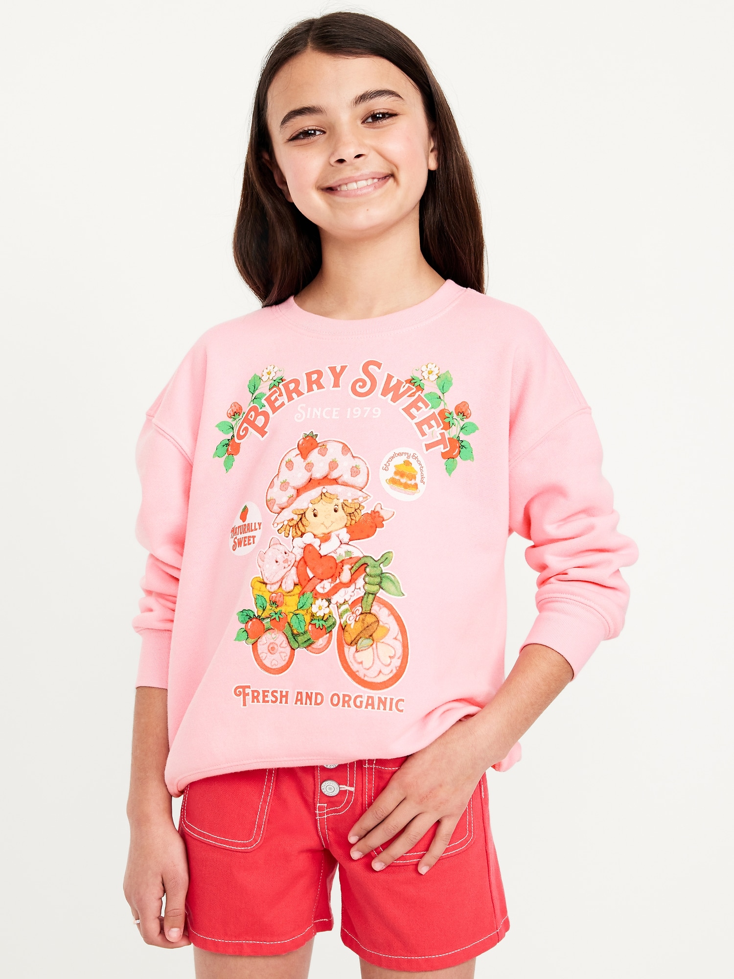 Strawberry Shortcake™ Oversized Graphic Sweatshirt for Girls: crew neck, long sleeves, drop shoulders, licensed graphic, banded hem, © WildBrain, #684120