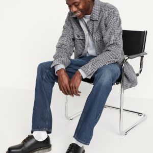 Structured Straight Non-Stretch Jeans: zip fly, front scoop pockets, back patch pockets, #584462