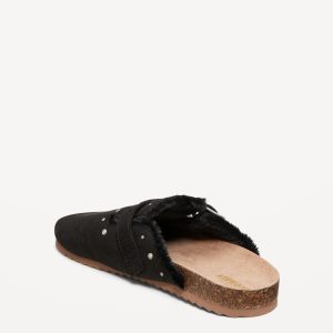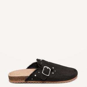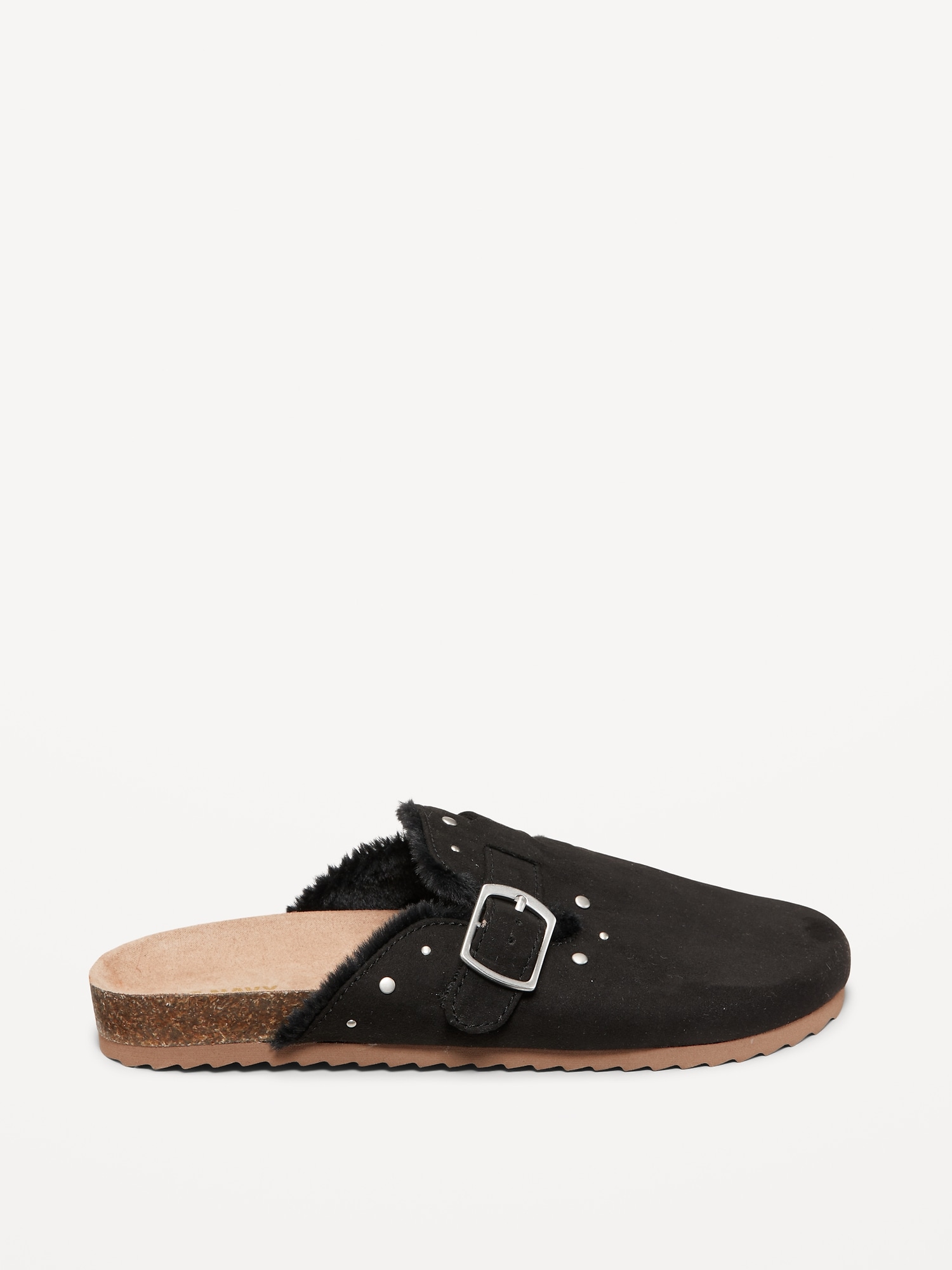 Studded Faux-Suede Clogs for Girls: slip-on style, studs along front, buckled strap across foot, cork midsole and textured outsole, #808307