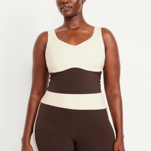 StudioSmooth Seamed Longline Top: Featuring StudioSmooth. Buttery soft and breathable, with a barely-there feel.v-neck and v-back, wide straps, shelf bra with removable pads, go-dry wicks moisture, #784415