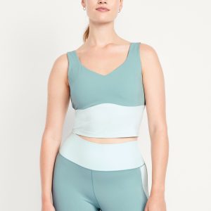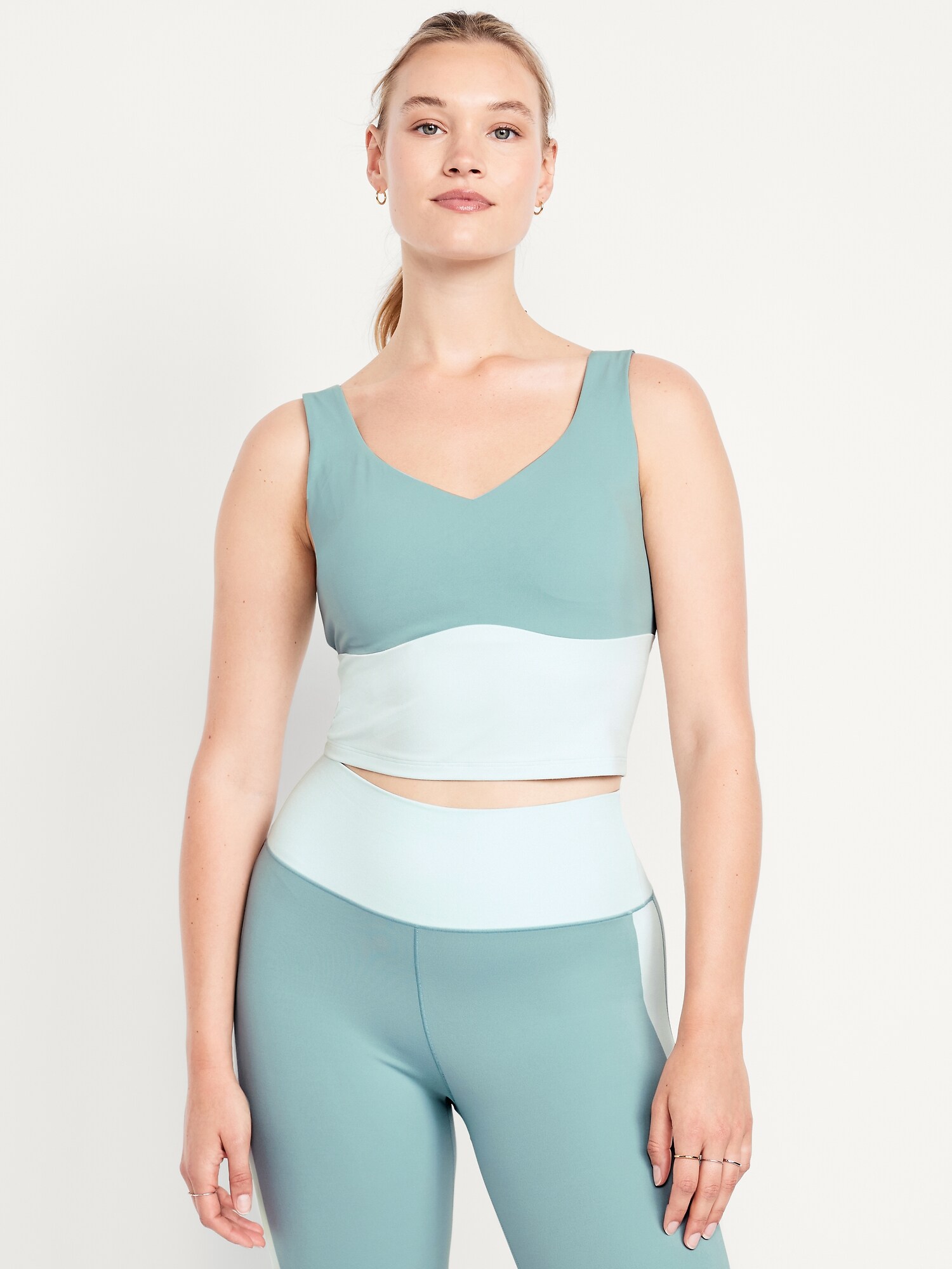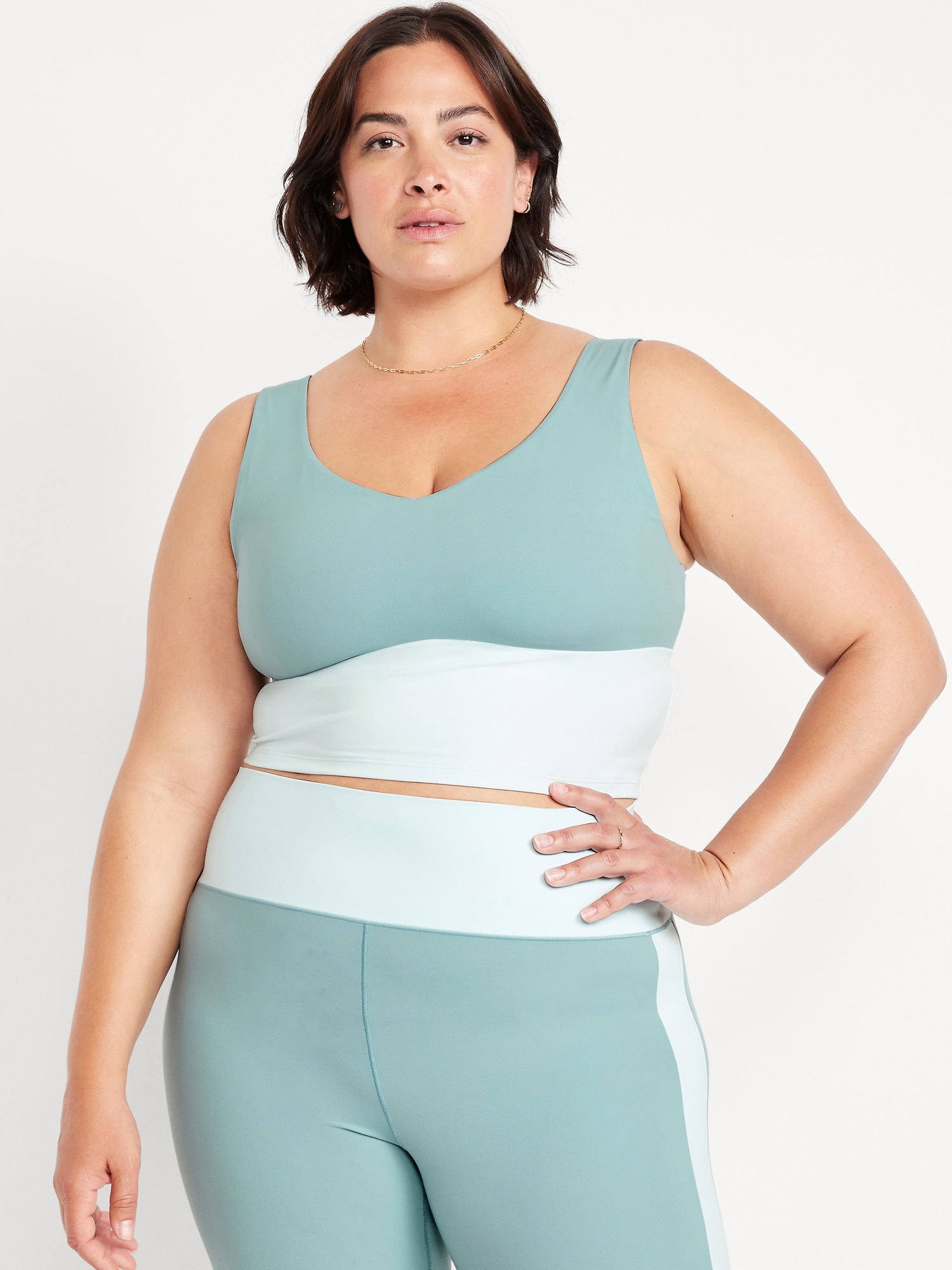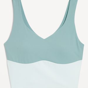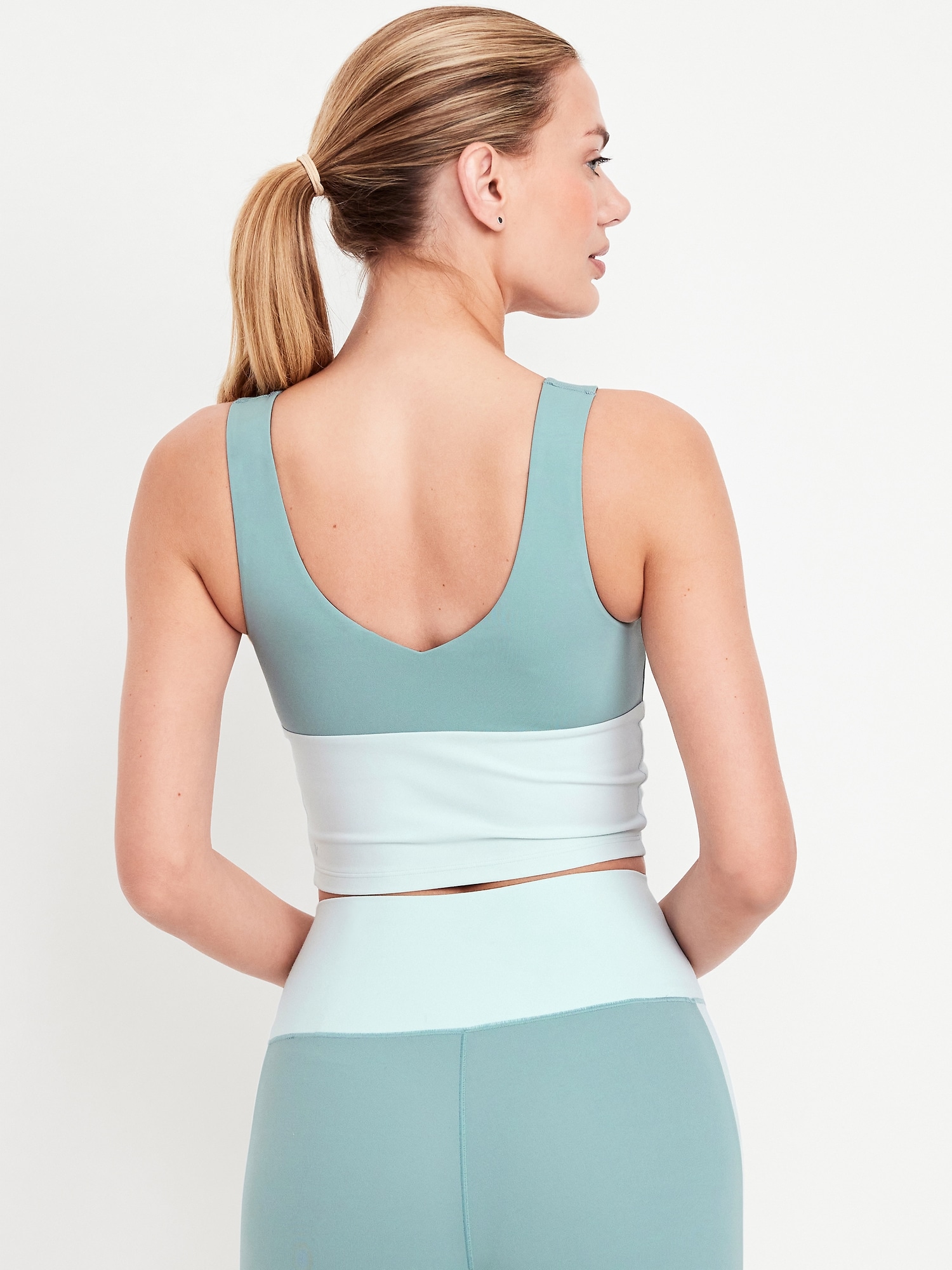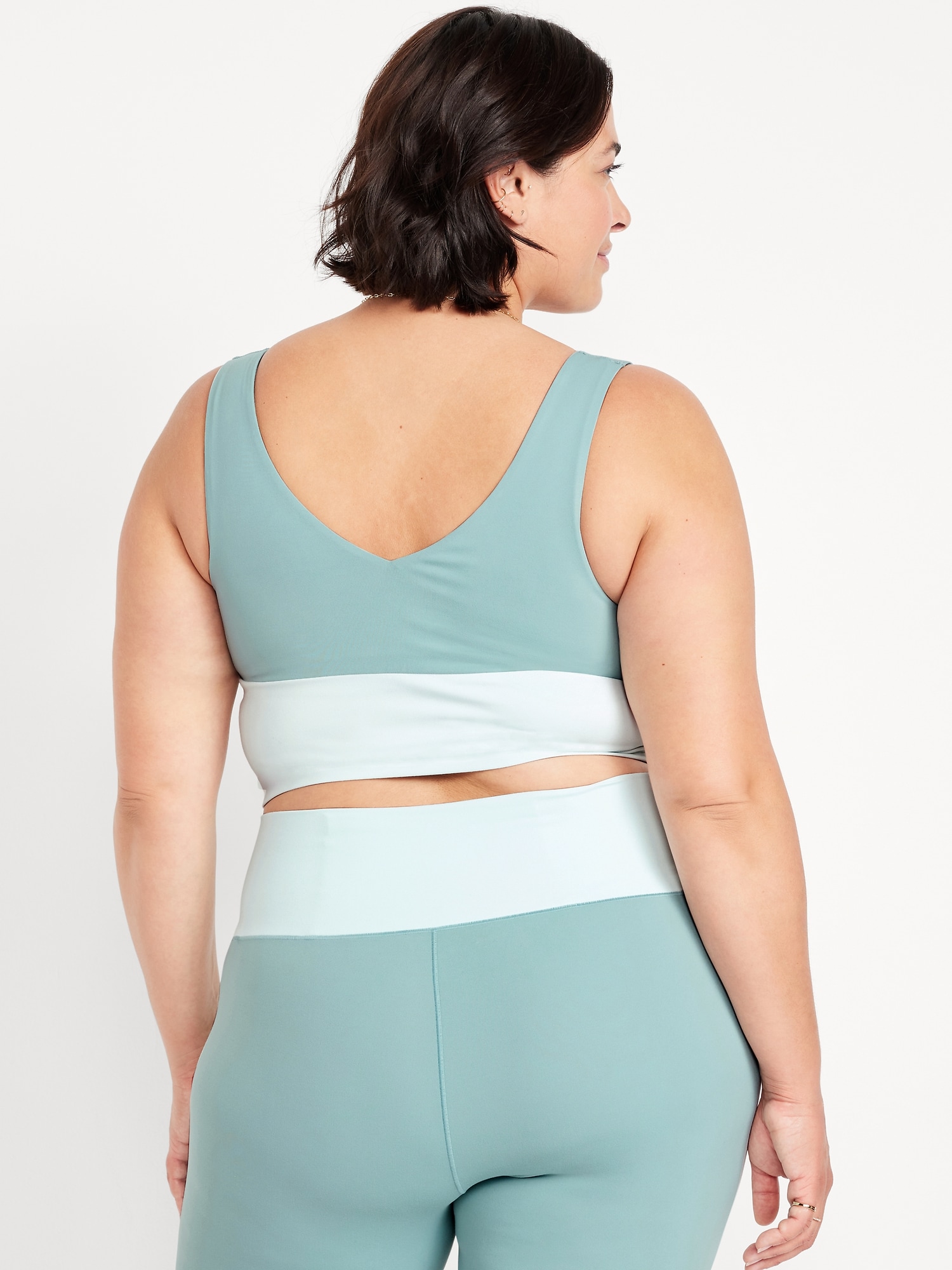 StudioSmooth Seamed Longline Top: Featuring StudioSmooth. Buttery soft and breathable, with a barely-there feel.v-neck and v-back, wide straps, shelf bra with removable pads, go-dry wicks moisture, #784415