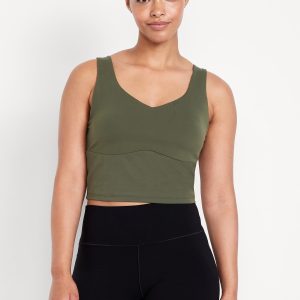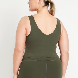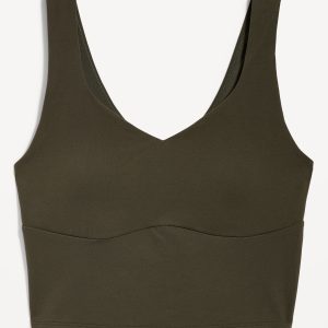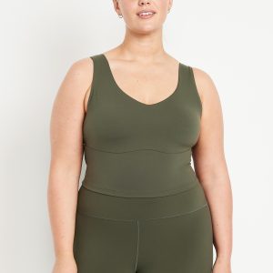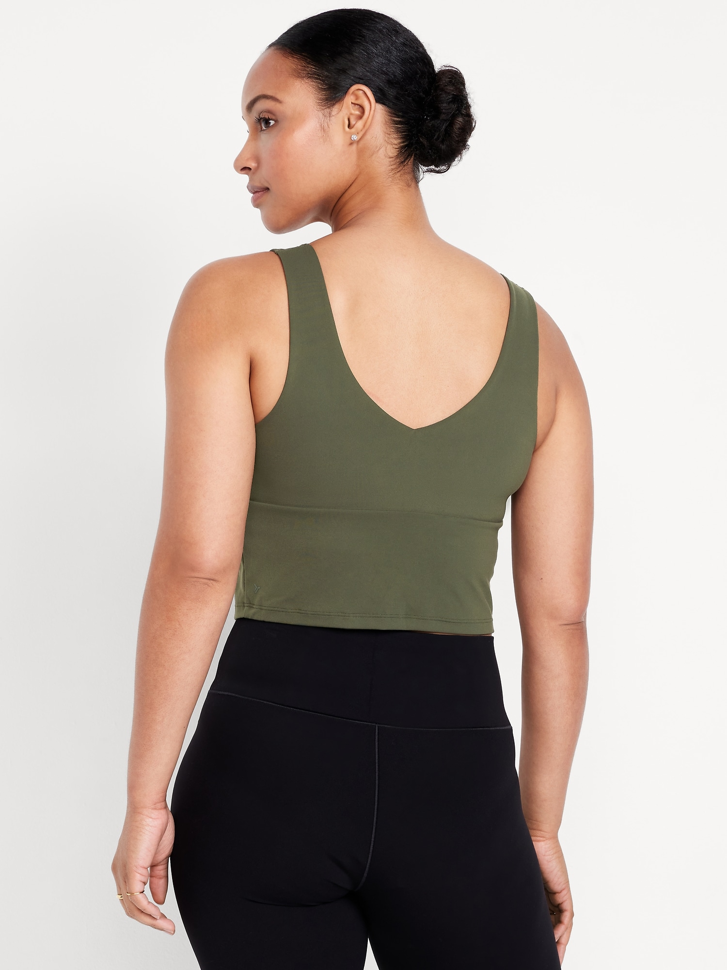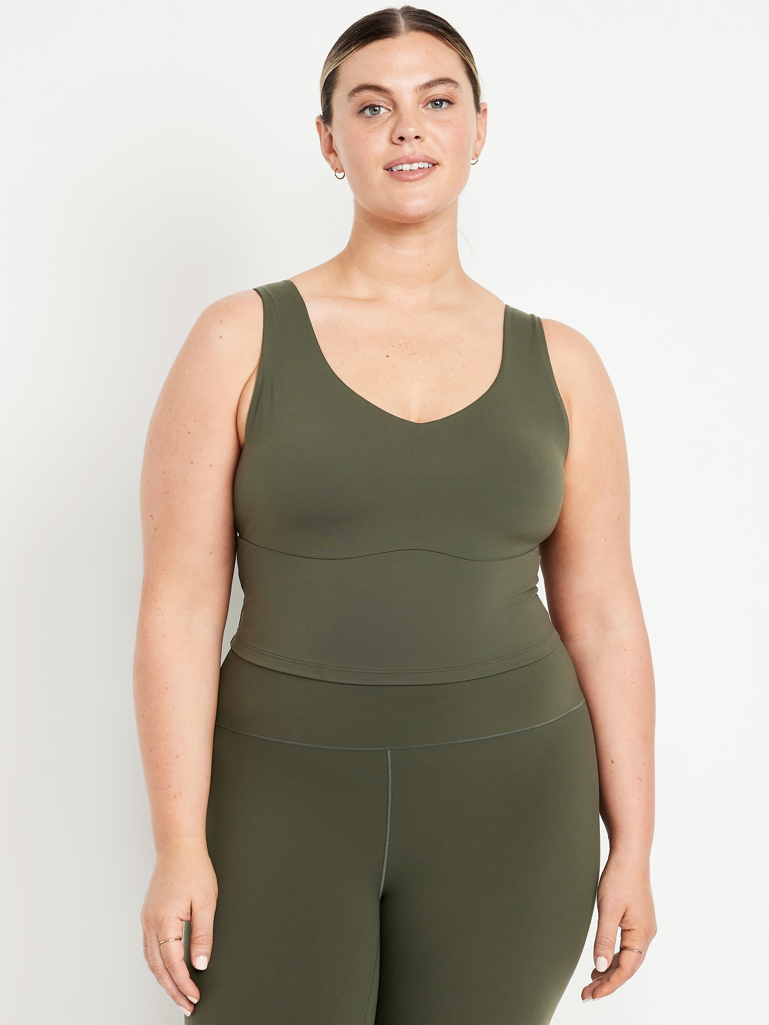 StudioSmooth Seamed Longline Top: Featuring StudioSmooth. Buttery soft and breathable, with a barely-there feel.v-neck and v-back, wide straps, shelf bra with removable pads, go-dry wicks moisture, #784415