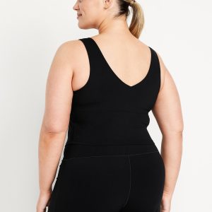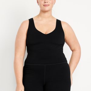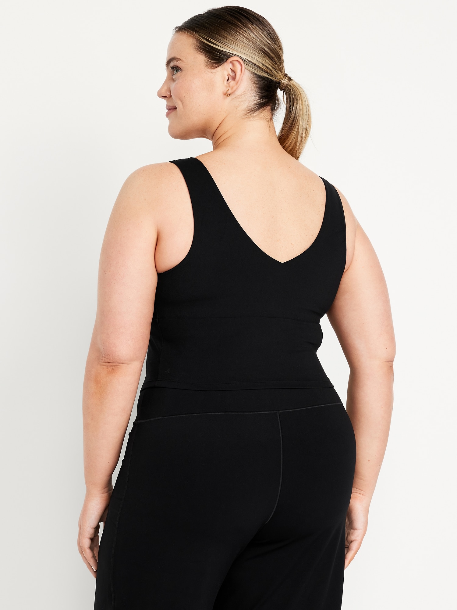 StudioSmooth Seamed Longline Top: Featuring StudioSmooth. Buttery soft and breathable, with a barely-there feel.v-neck and v-back, wide straps, shelf bra with removable pads, go-dry wicks moisture, #784415