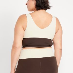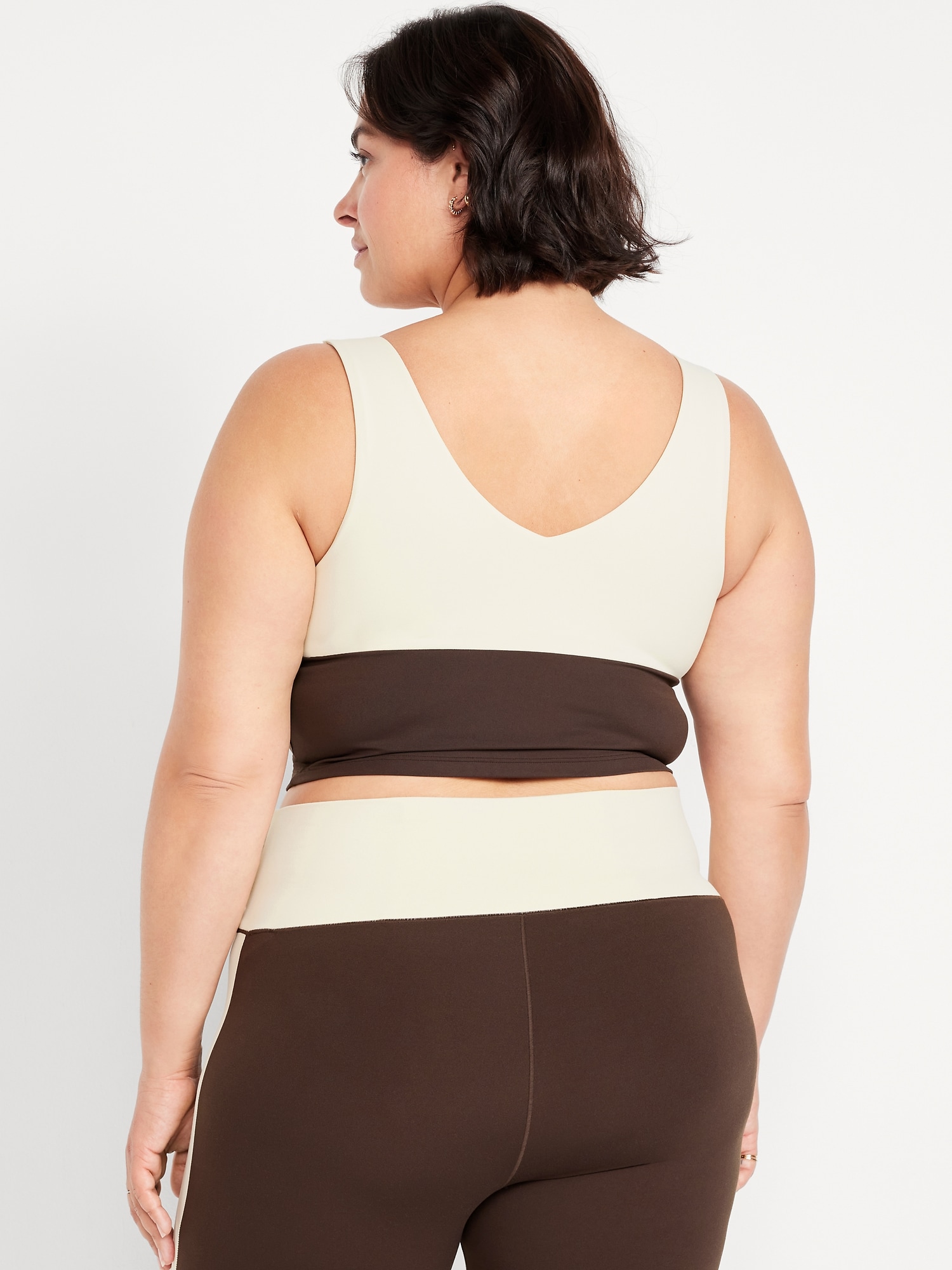 StudioSmooth Seamed Longline Top: Featuring StudioSmooth. Buttery soft and breathable, with a barely-there feel.v-neck and v-back, wide straps, shelf bra with removable pads, go-dry wicks moisture, #784415