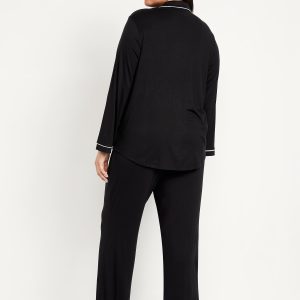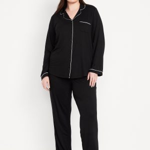 Sunday Sleep Knit Jersey Pant Set: Knit jersey so unbelievably soft and stretchy.set includes pajama shirt and matching bottoms, spread collar, long sleeves, patch chest pocket, full-button front, elastic-waist pajama pants, decorative button fly, #422082