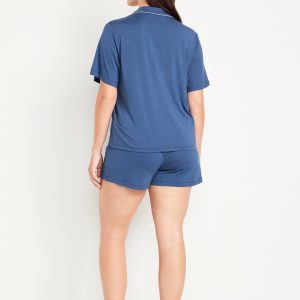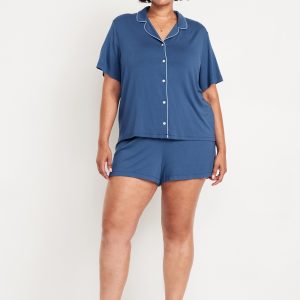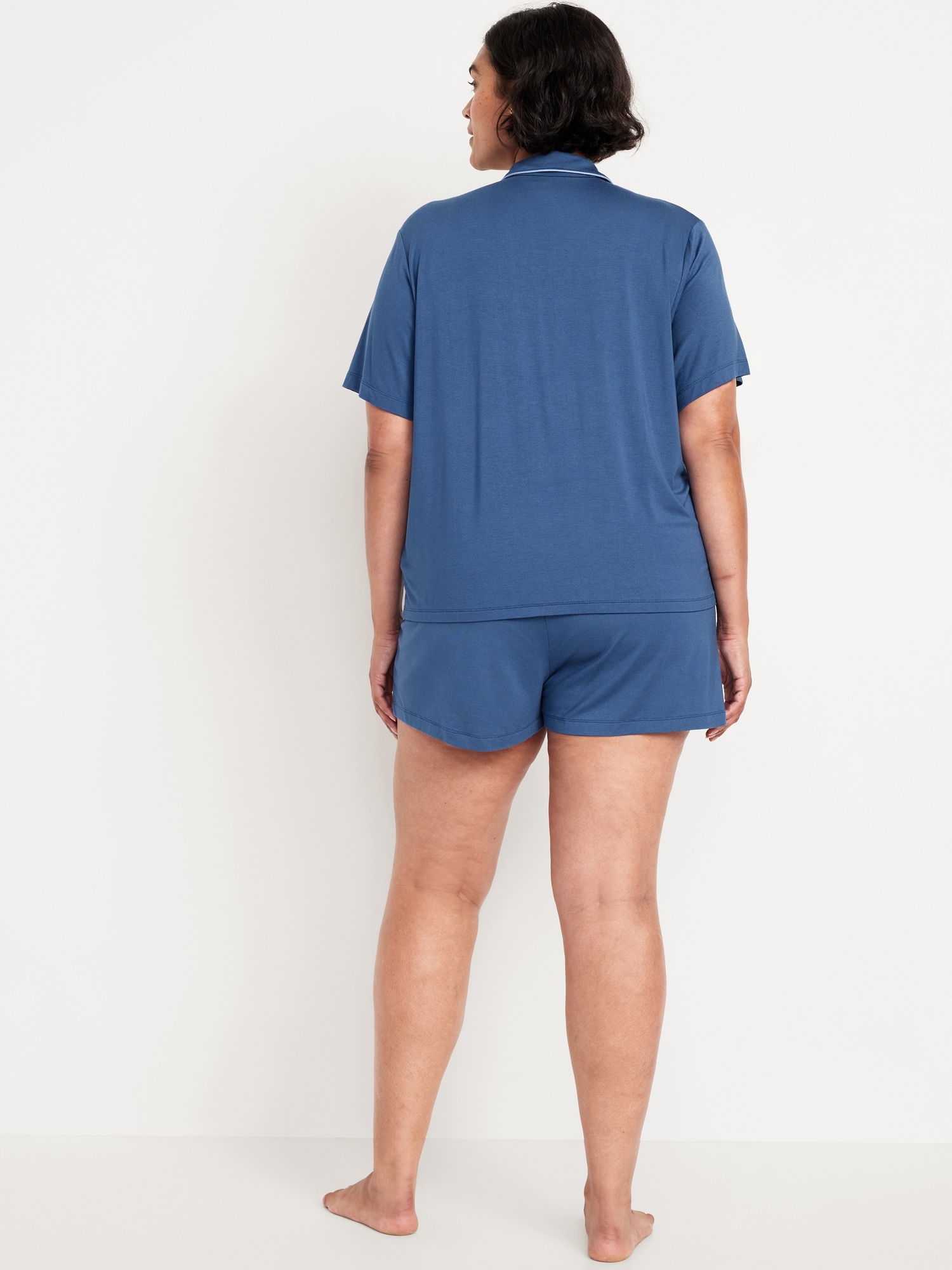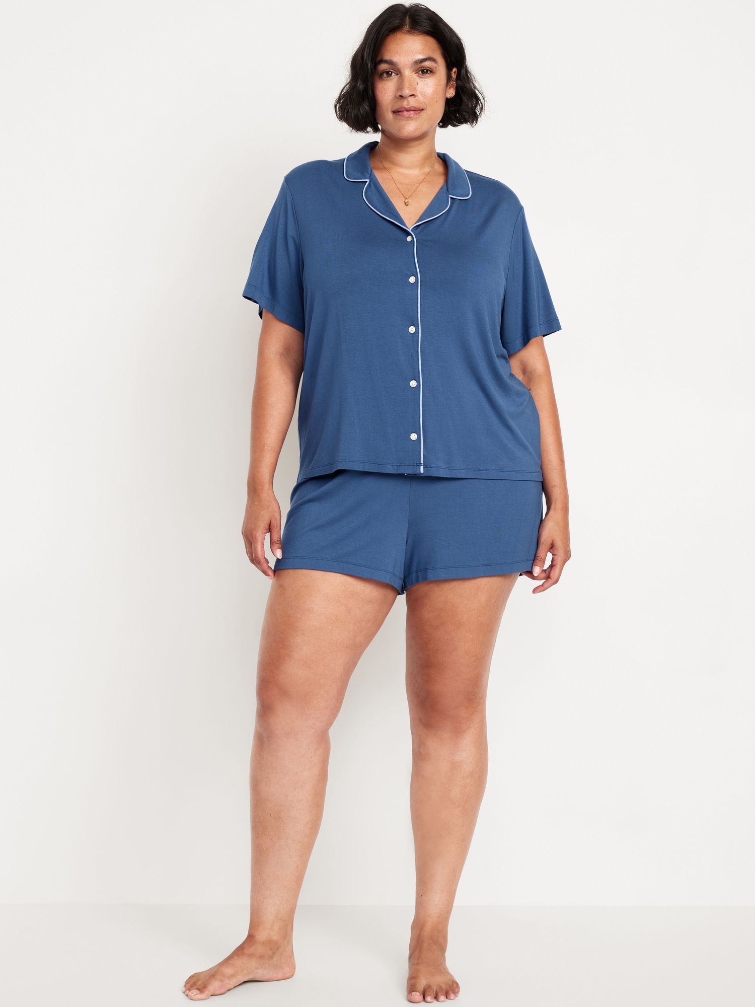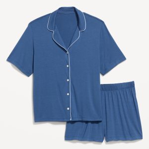 Sunday Sleep Knit Jersey Short Set: Knit jersey so unbelievably soft and stretchy.set includes pajama shirt and matching shorts, spread collar, short sleeves, full-button front, elastic-waist pull-on shorts, #422180