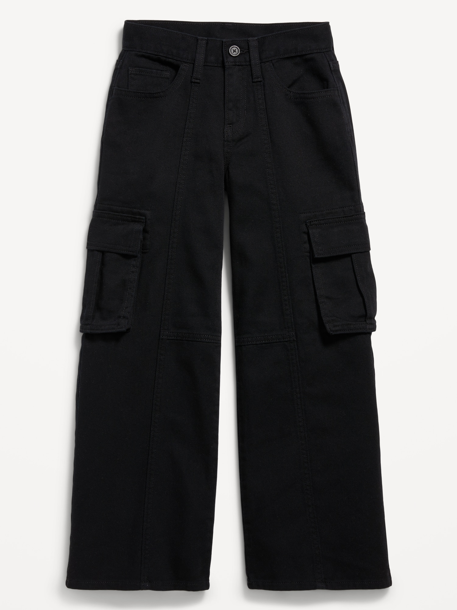 Super Baggy Wide-Leg Cargo Twill Pants for Girls: regular button closure, zip fly, scoop pockets and coin pocket, patch pockets at back, paneled front, cargo pockets at each leg, wide leg, #829220