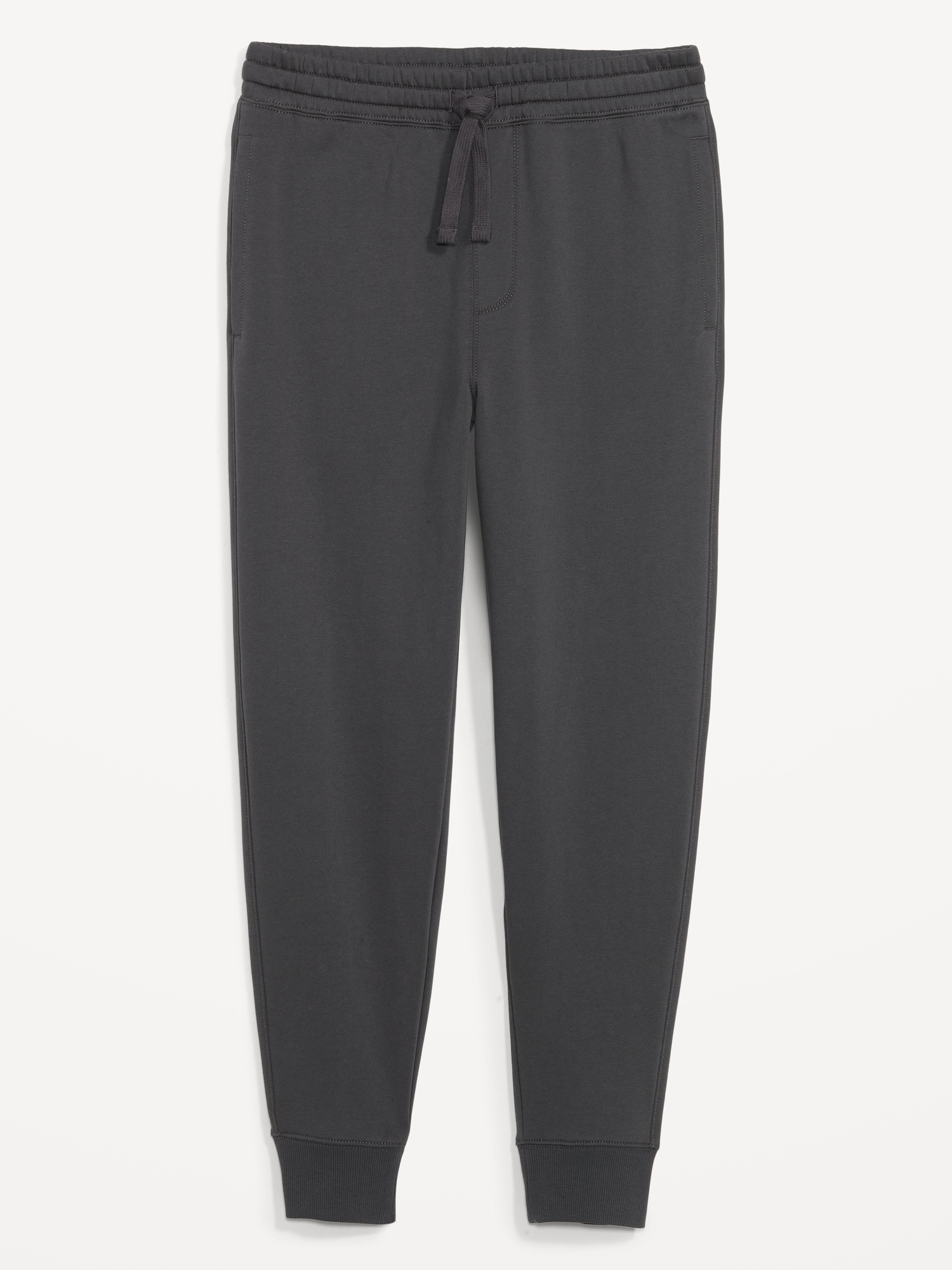 Tapered Jogger Sweatpants: elastic-drawstring waist, faux fly, on-seam pockets, single back patch pocket, rib-knit cuffs, pull-on style, #470325