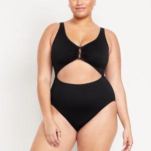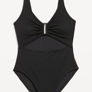 Textured One-Piece Cut-Out Swimsuit