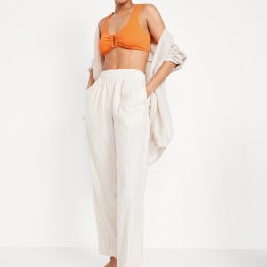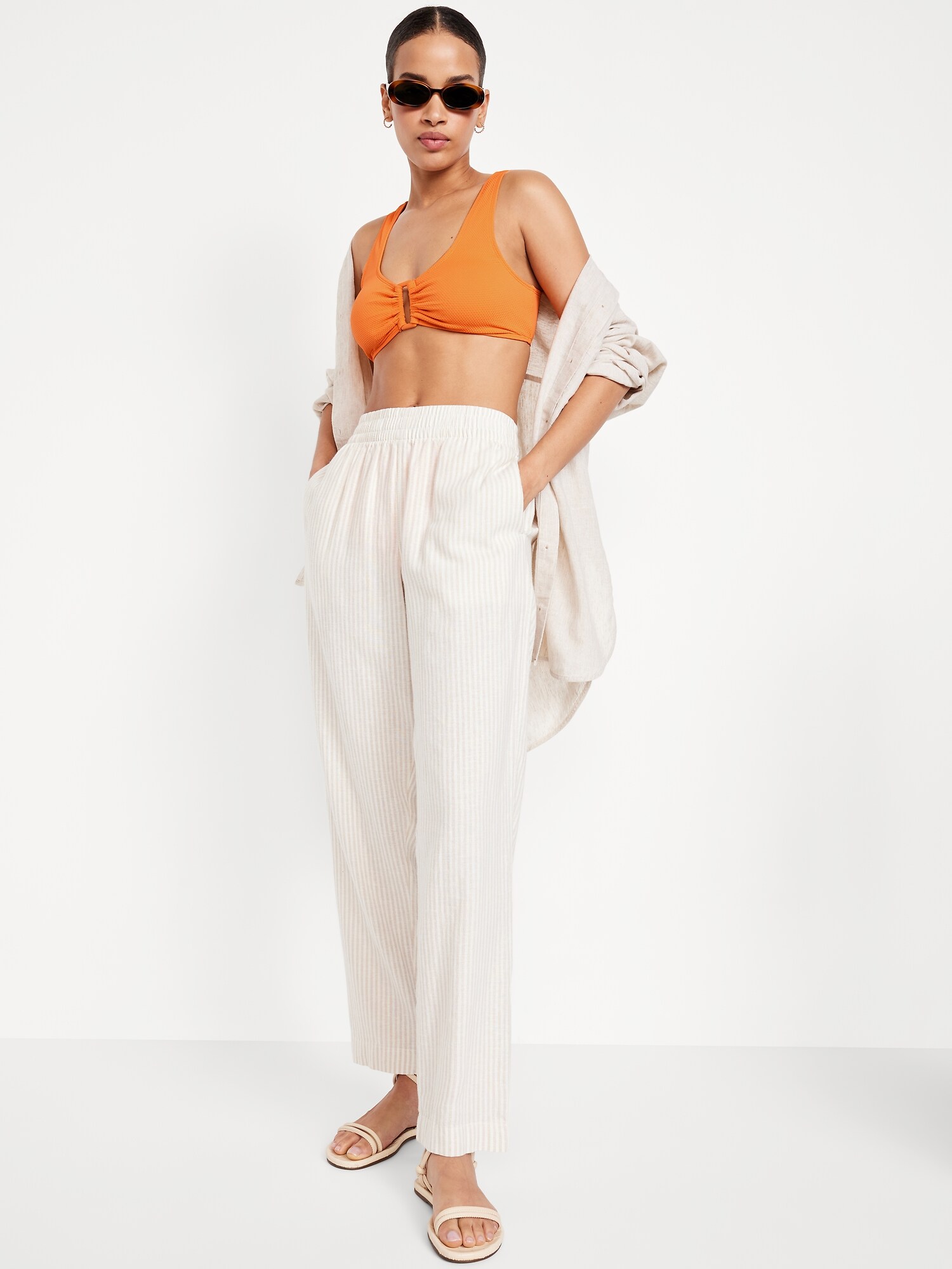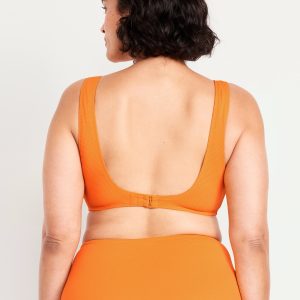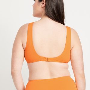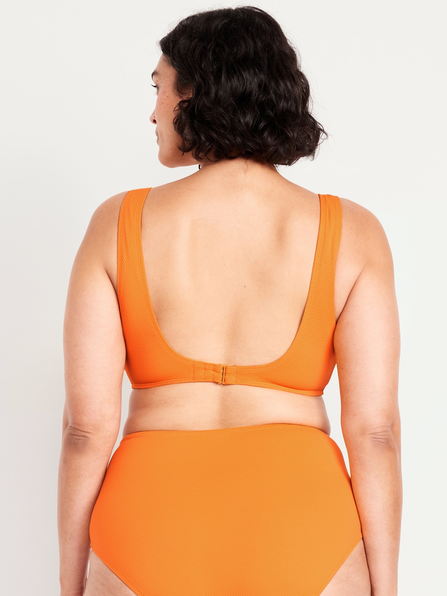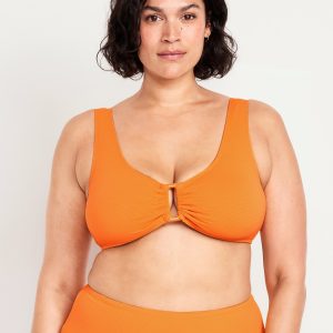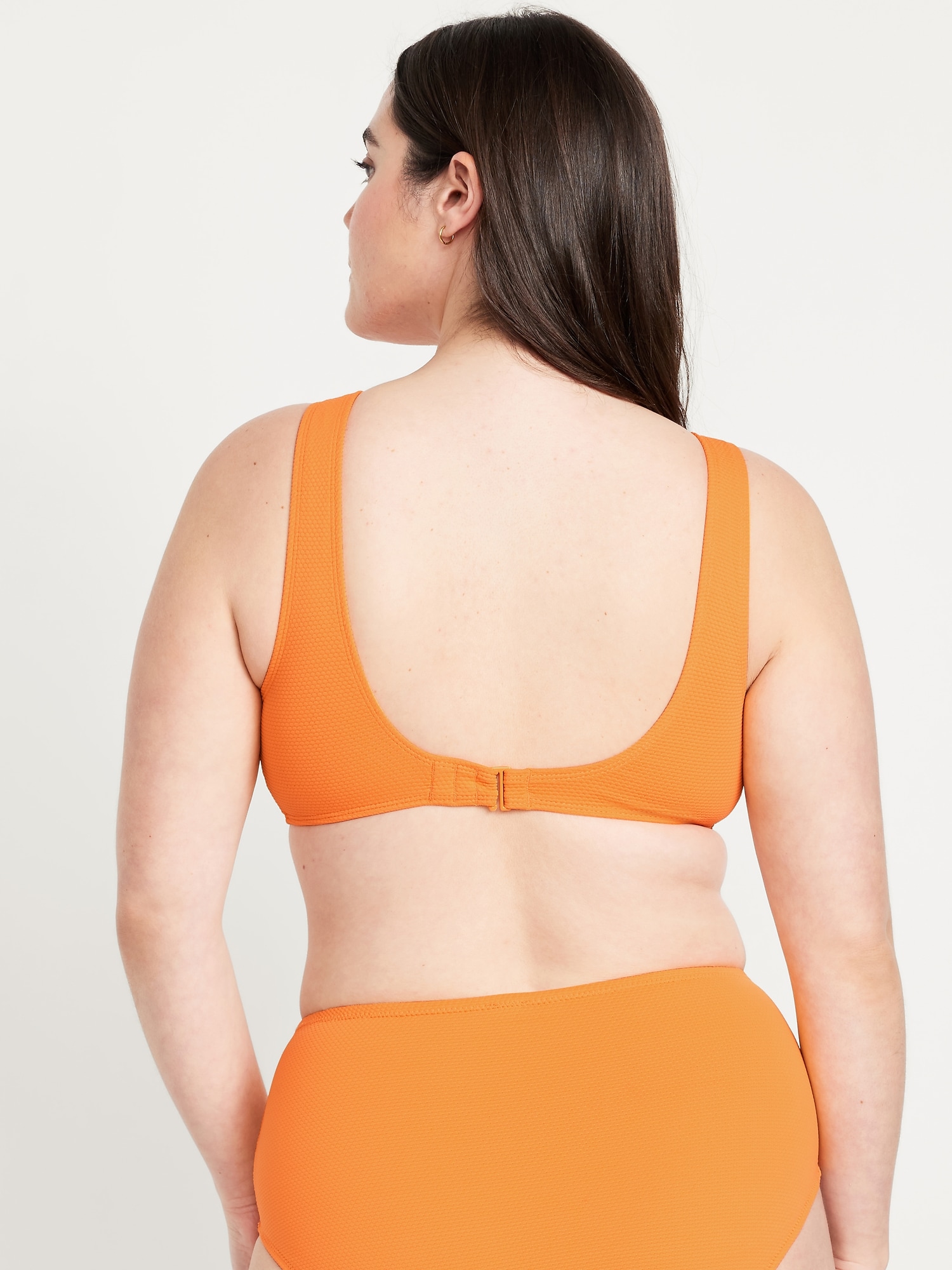 Textured Swim Top: scoop neck, wide straps, ruched front with o-ring accent, removable cups, hook-and-eye clasp at back, #660878
