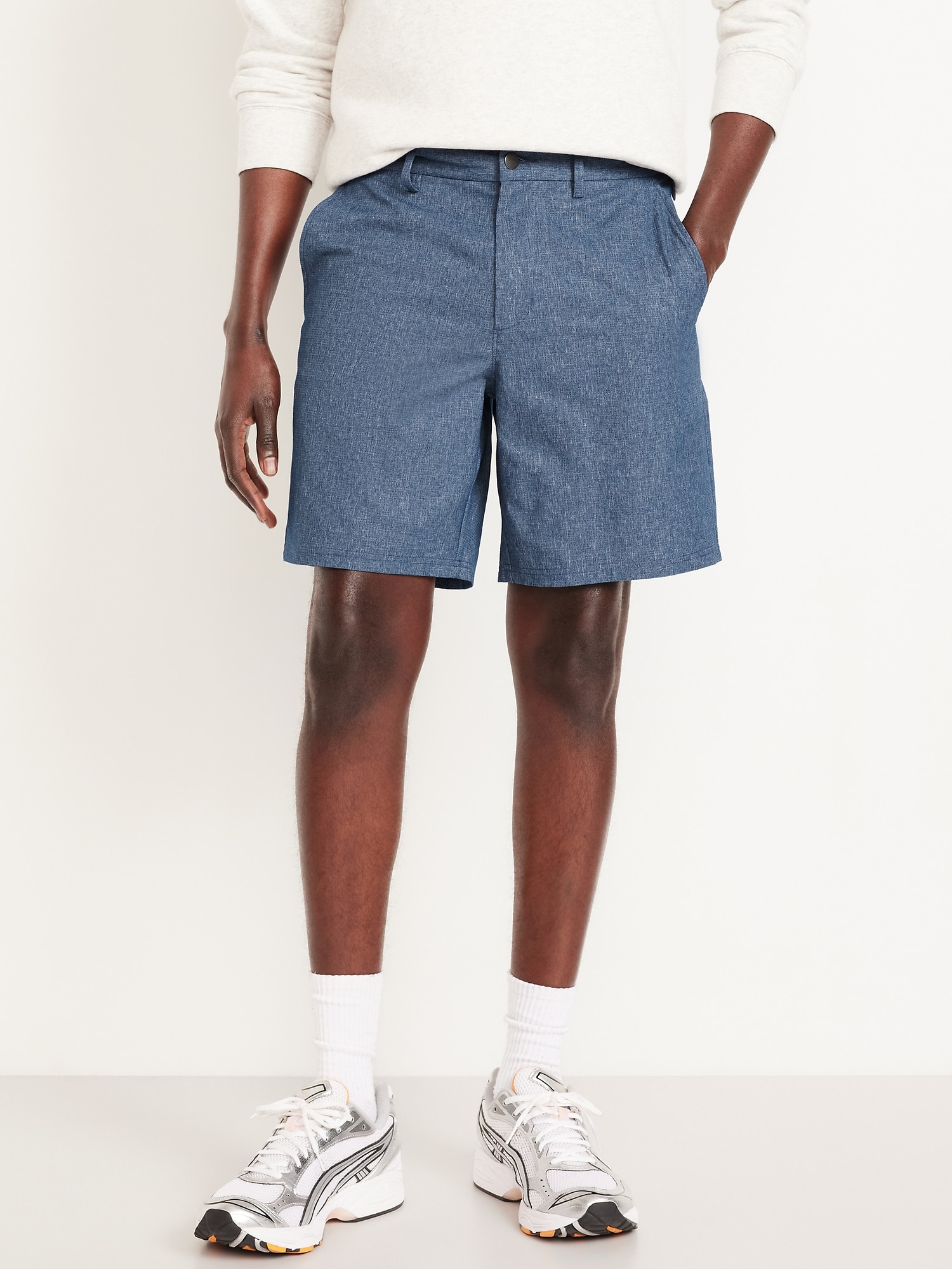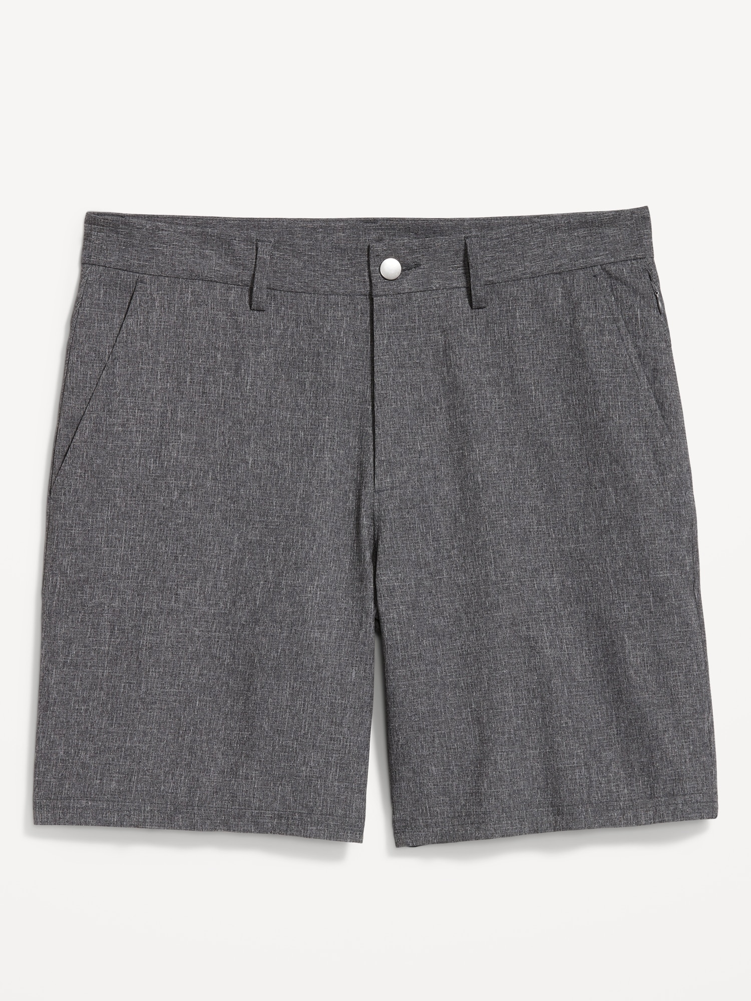 Textured Tech Chino Shorts — 8-inch inseam: Wrinkle free, with cooling tech and four-way stretch.snap front, belt loops, zip fly, front pockets, single back welt pocket, left stash pocket, #763602