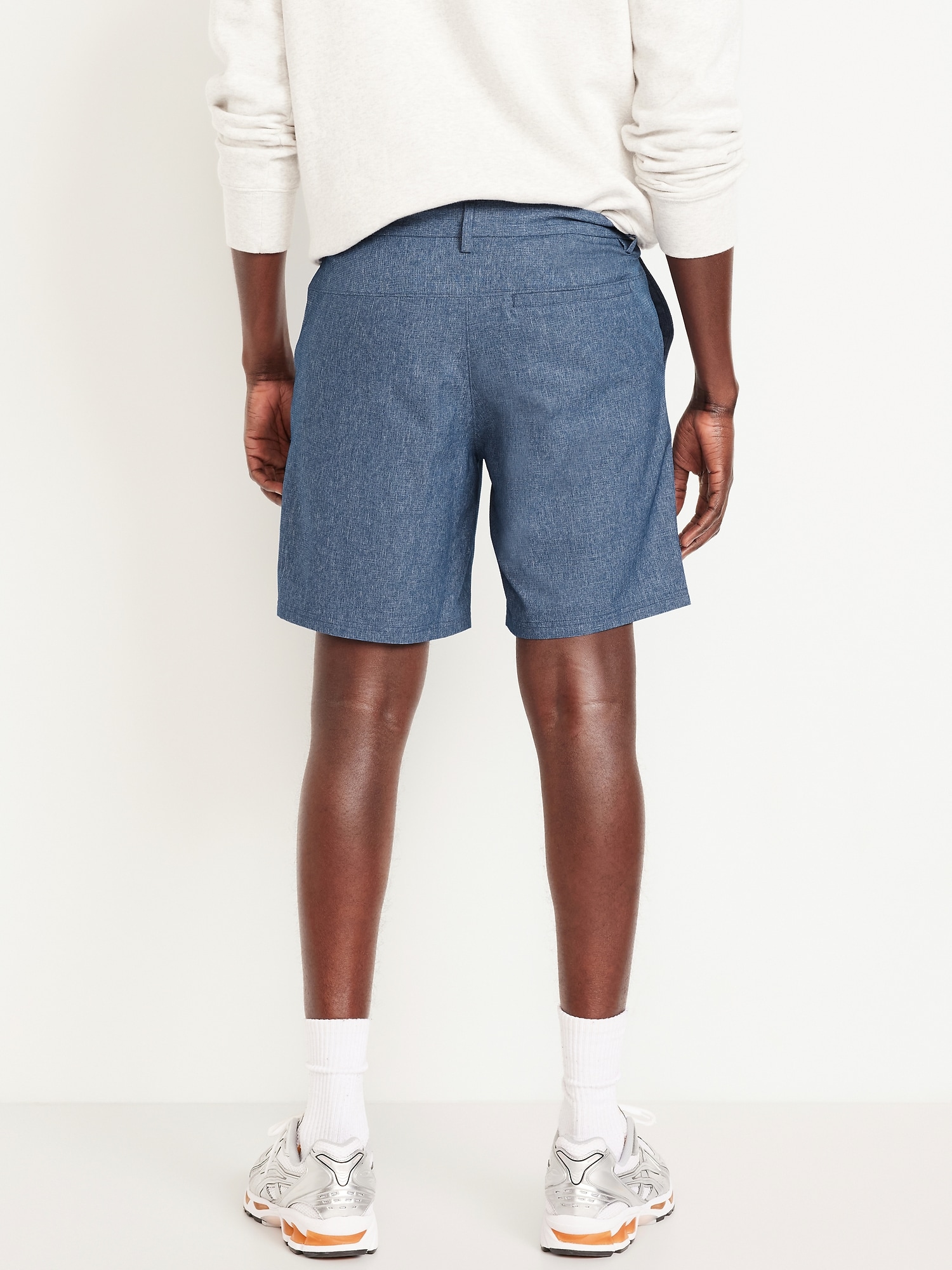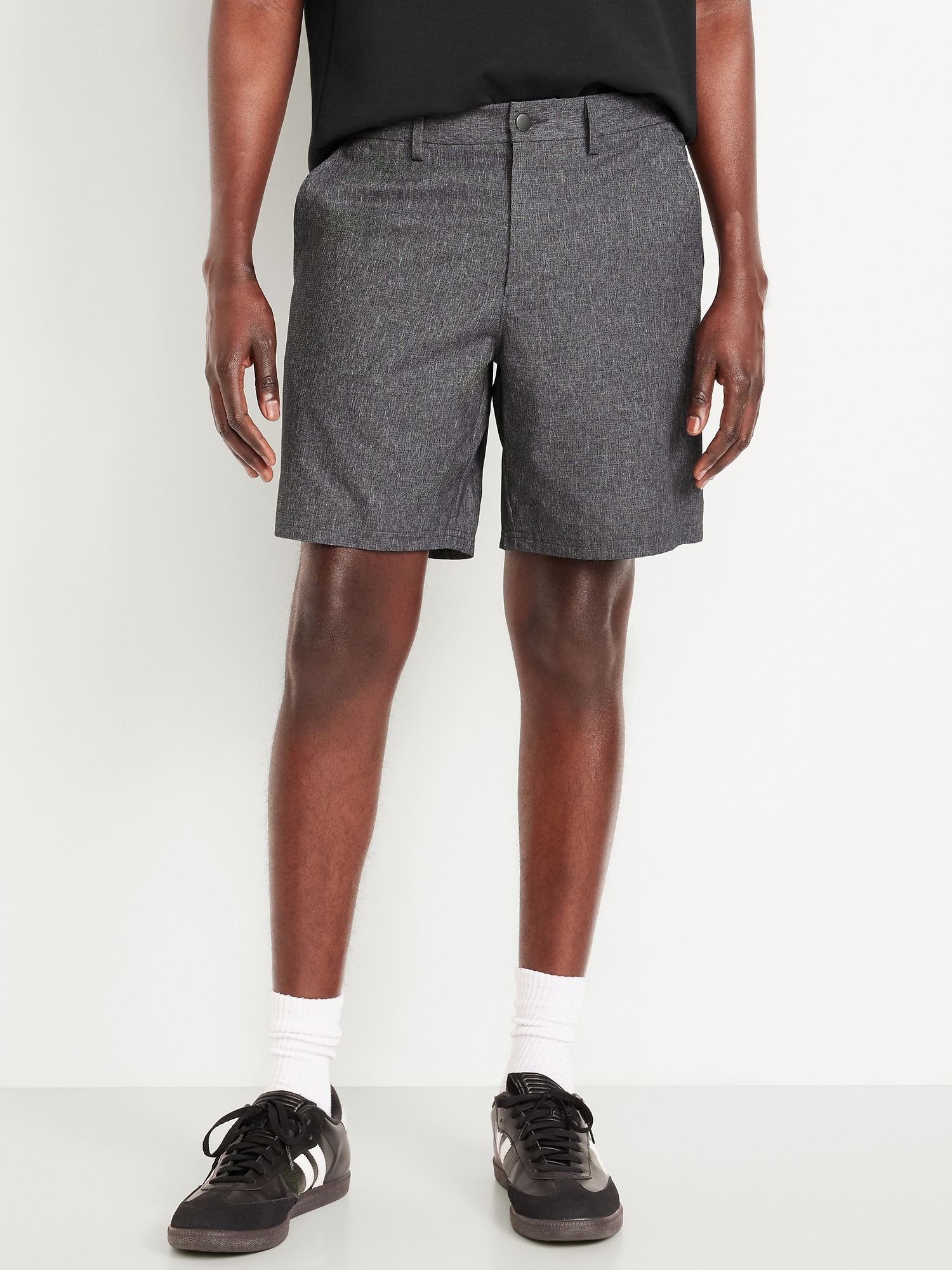 Textured Tech Chino Shorts — 8-inch inseam: Wrinkle free, with cooling tech and four-way stretch.snap front, belt loops, zip fly, front pockets, single back welt pocket, left stash pocket, #763602