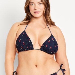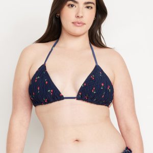 Textured Triangle String Bikini Swim Top