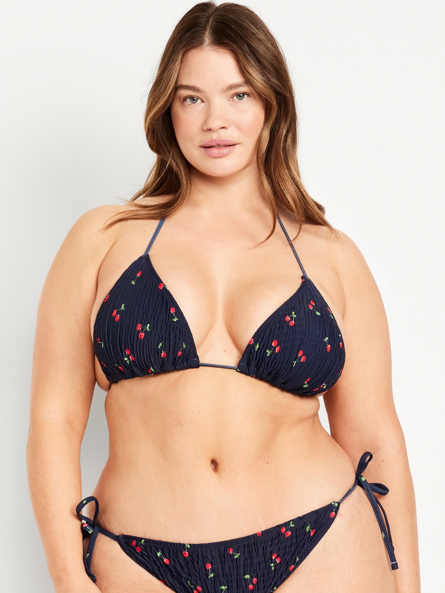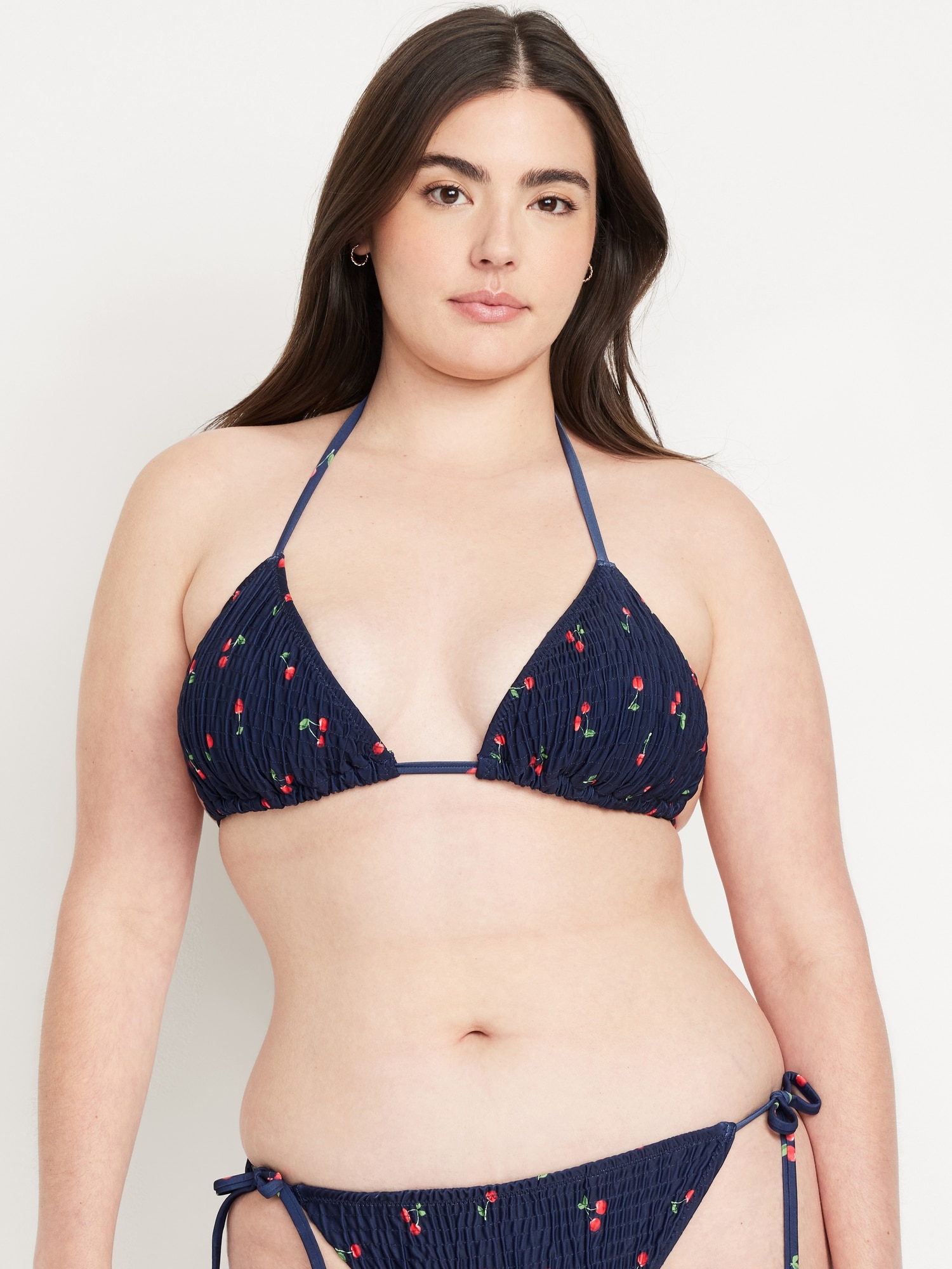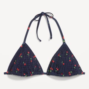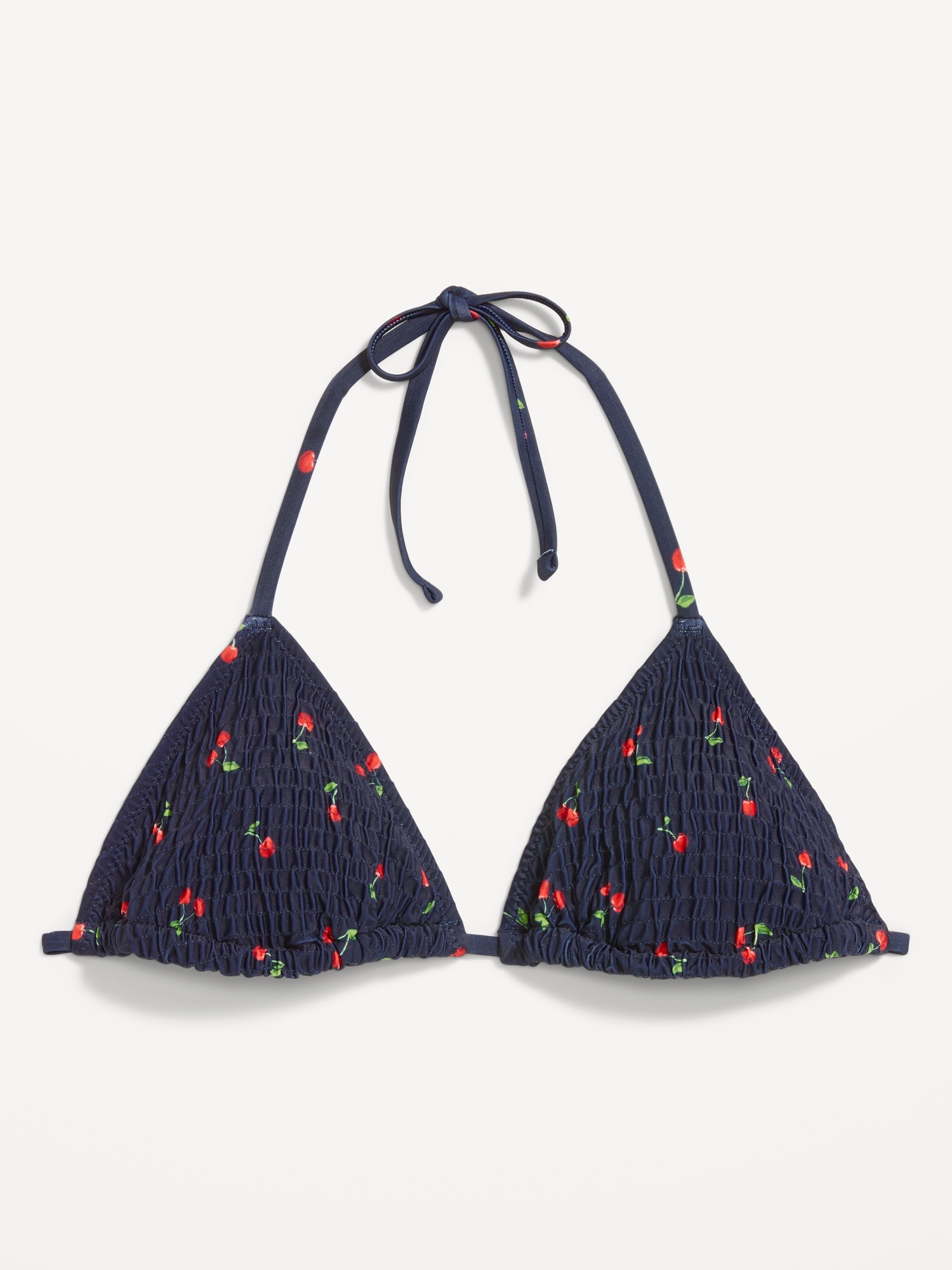 Textured Triangle String Bikini Swim Top: tie-neck halter straps, removable pads, shirred detail, #403813