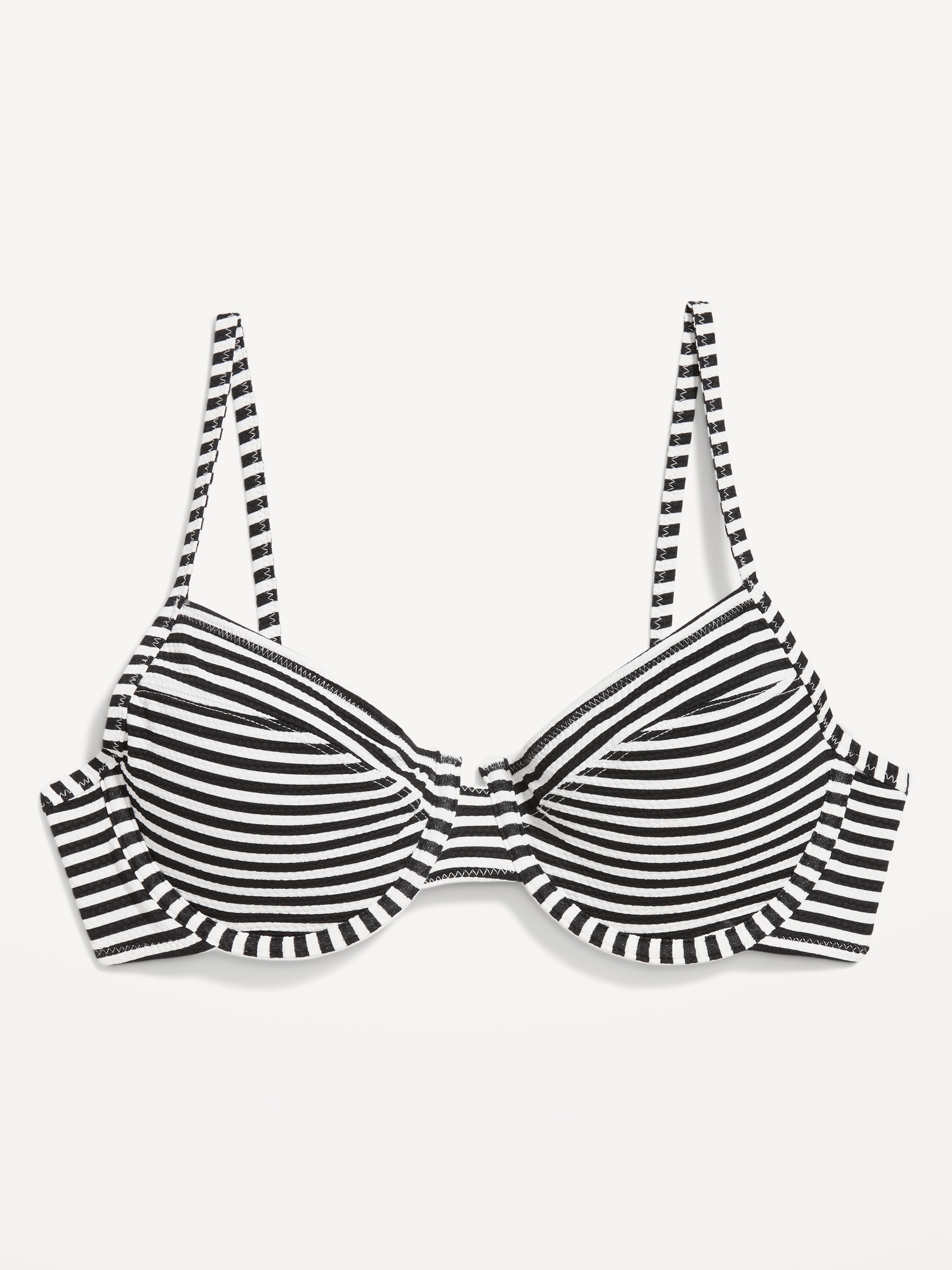 Textured Underwire Balconette Swim Top: adjustable straps, removable cups, underwire and side-boning support, adjustable hook-and-eye at back, full lining, #680791