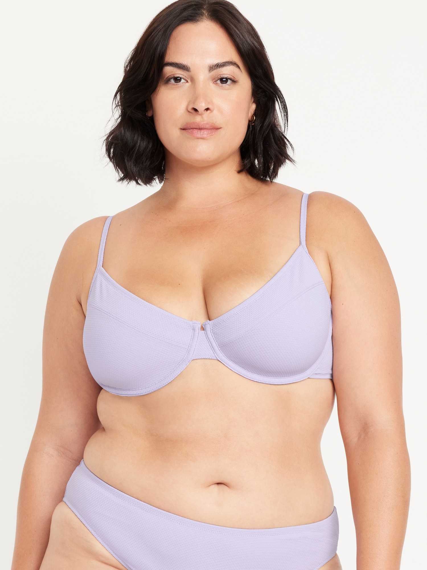 Textured Underwire Balconette Swim Top: adjustable straps, removable cups, underwire and side-boning support, adjustable hook-and-eye at back, full lining, #680791