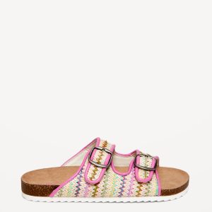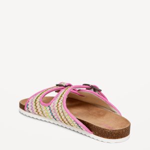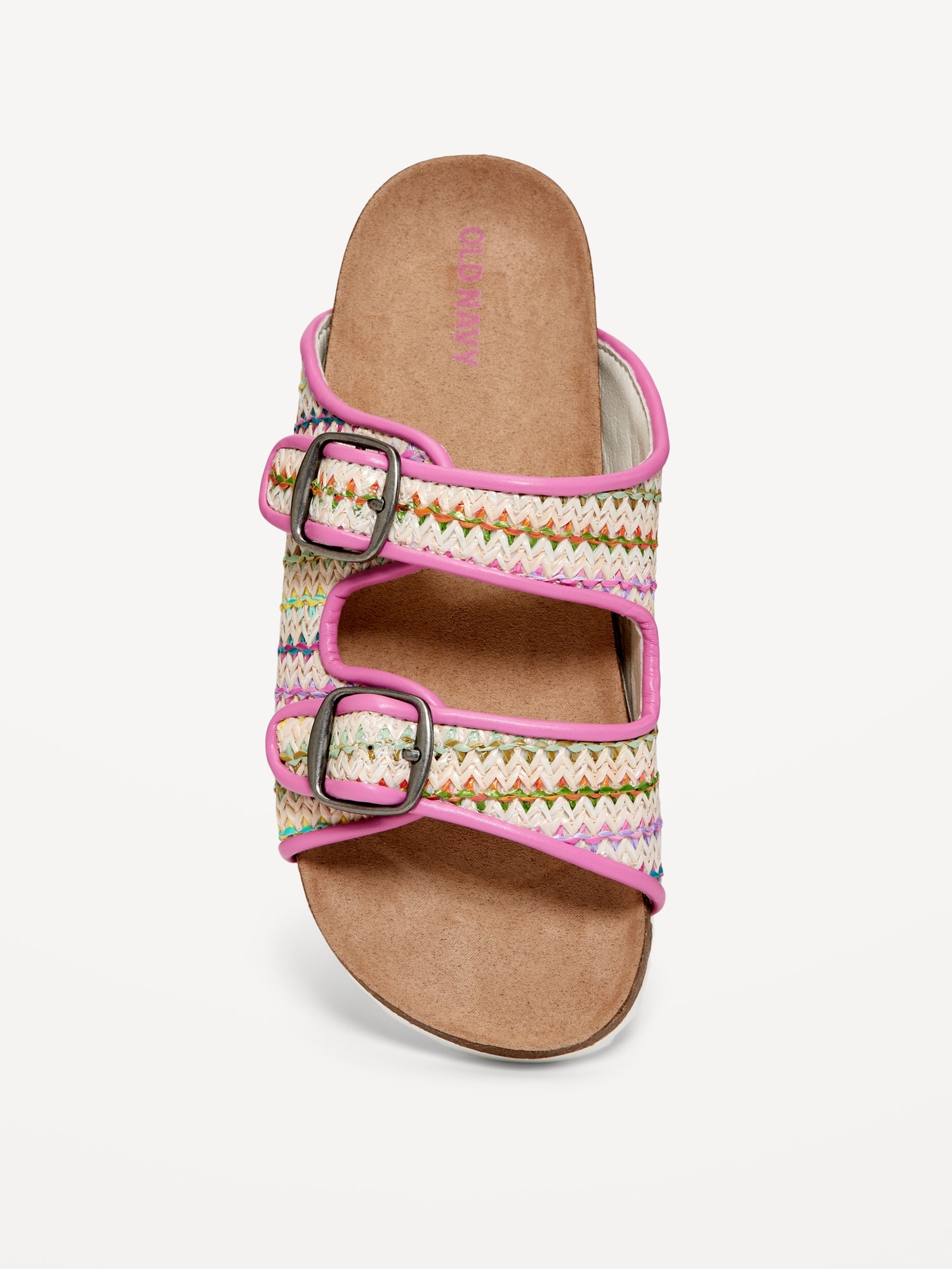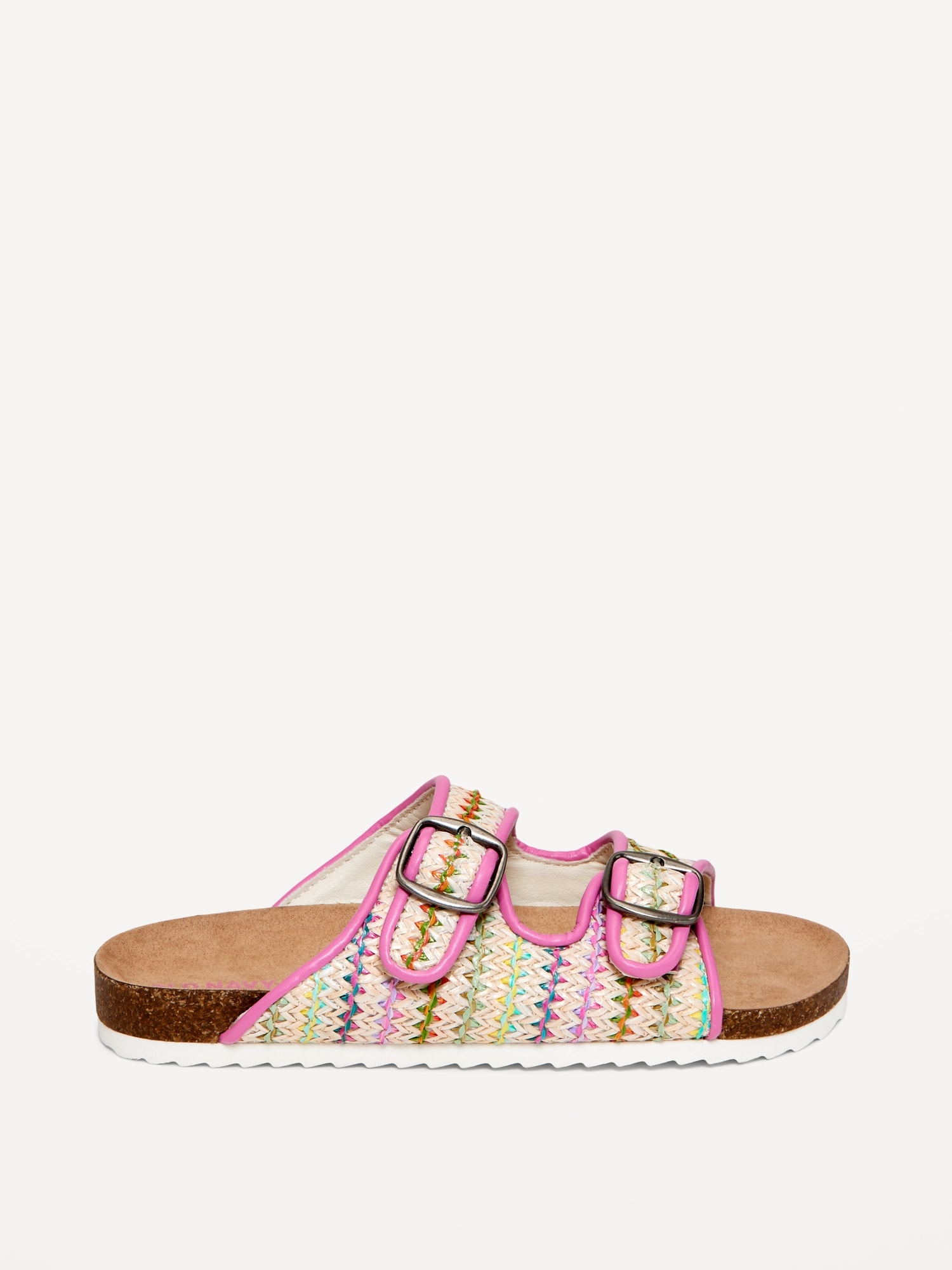 Textured-Woven Buckled Strap Sandals for Girls: double buckle straps, cushioned foot bed, faux-cork midsole, textured woven crochet-like pattern along straps, #693401