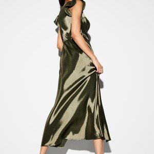 The Occasion by Old Navy Flutter-Sleeve Satin Maxi Dress: New! Special dresses and sets, made to make an entrance.deep v-neck, flutter-trim arm openings, seamed empire waist, center back elastic for comfort, front center slit, shirred detail, subtle tonal dots for a more dressed-up look, for parties, proms, graduations, weddings — these looks love an RSVP, #705416