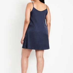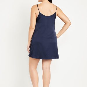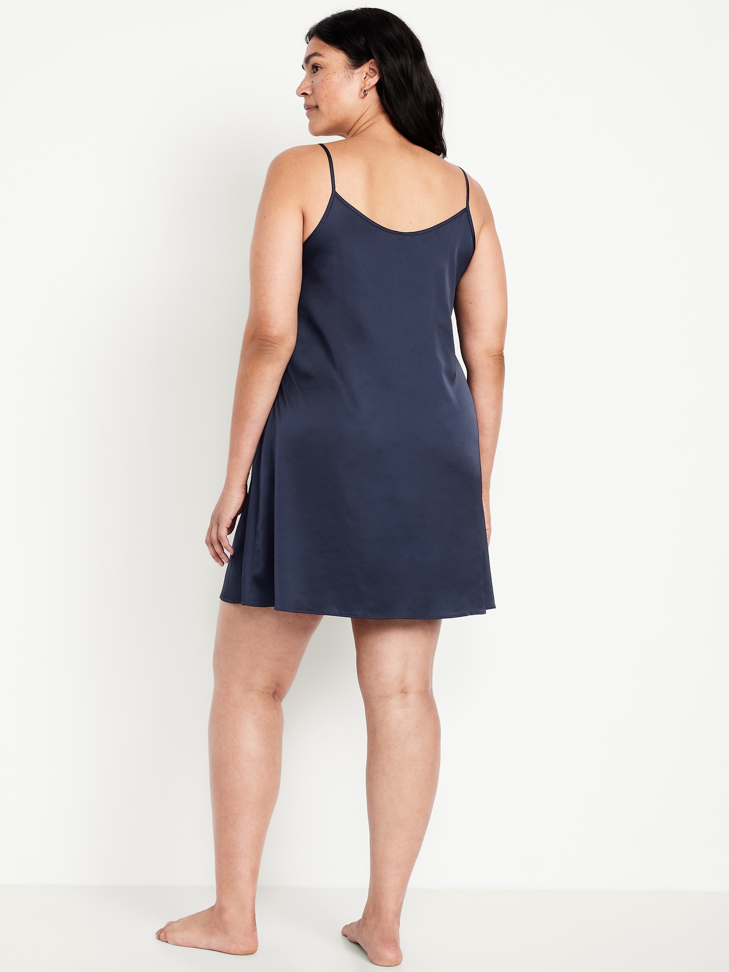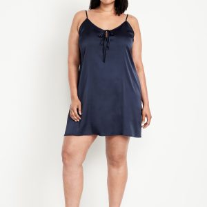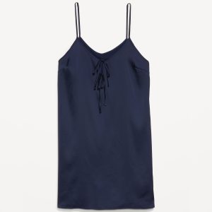 Tie-Front Satin Nightgown: tie-front scoop neck, spaghetti straps, keyhole opening at center front, darted bust, #766746