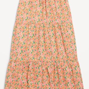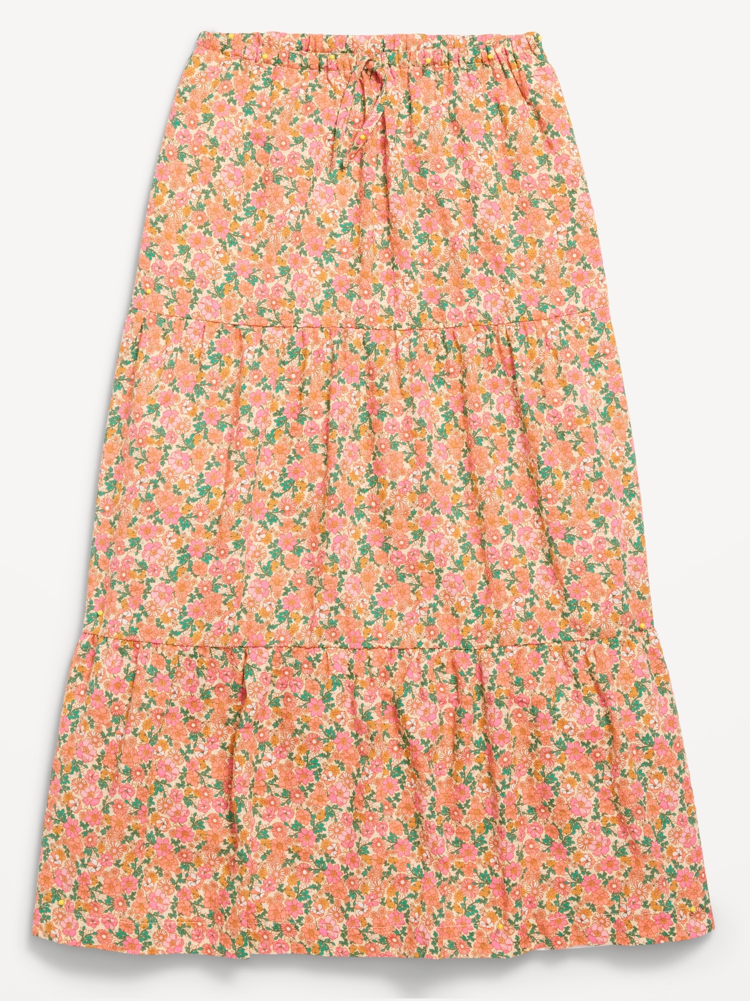 Tiered Swing Midi Skirt for Girls: elasticized waistband, functional drawstring, tiered, on-seam side pockets, all-over print in select colors, #690950