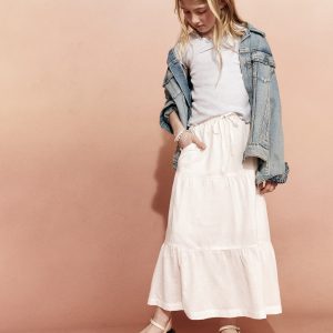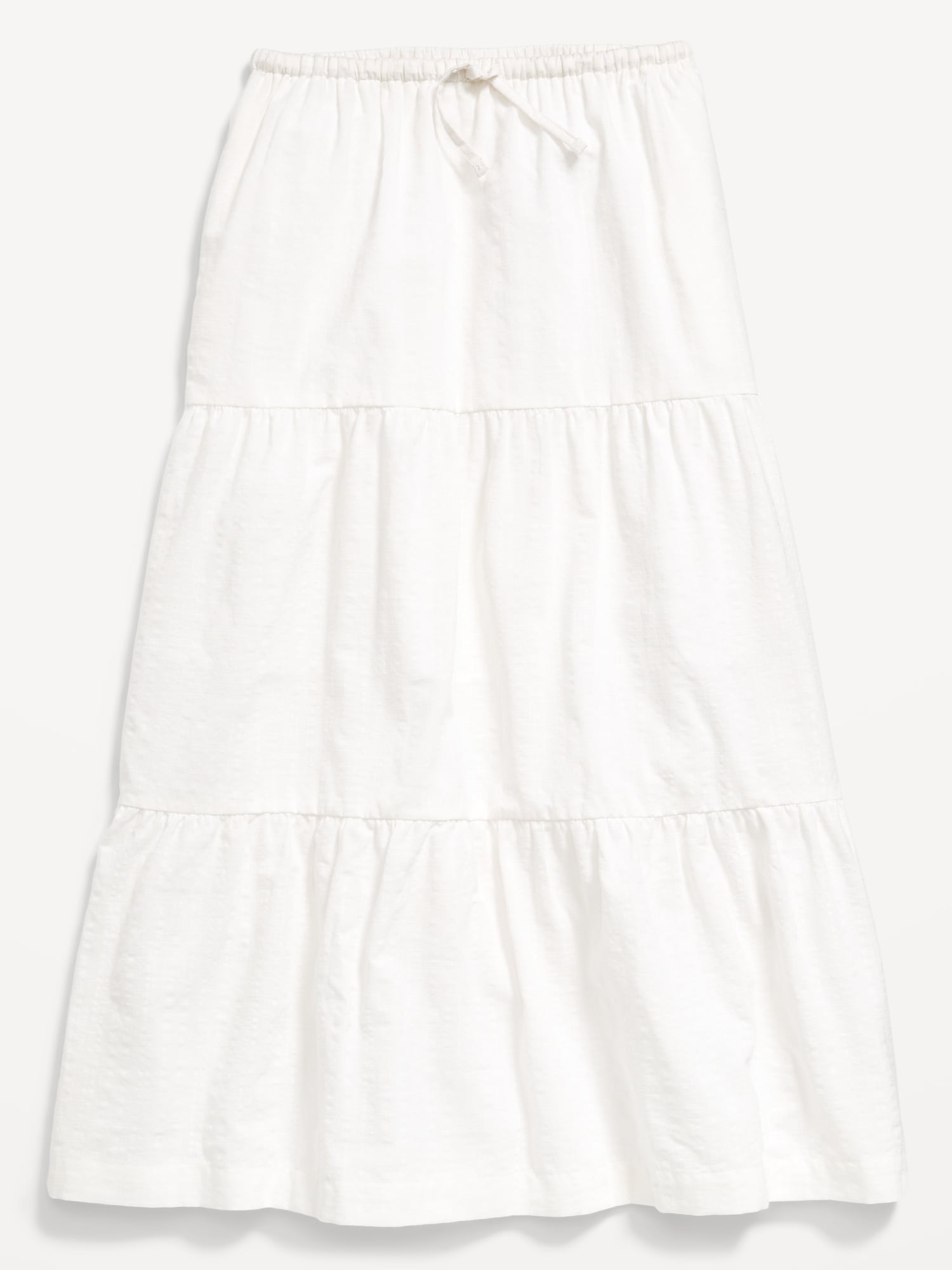 Tiered Swing Midi Skirt for Girls: elasticized waistband, functional drawstring, tiered, on-seam side pockets, all-over print in select colors, #690950