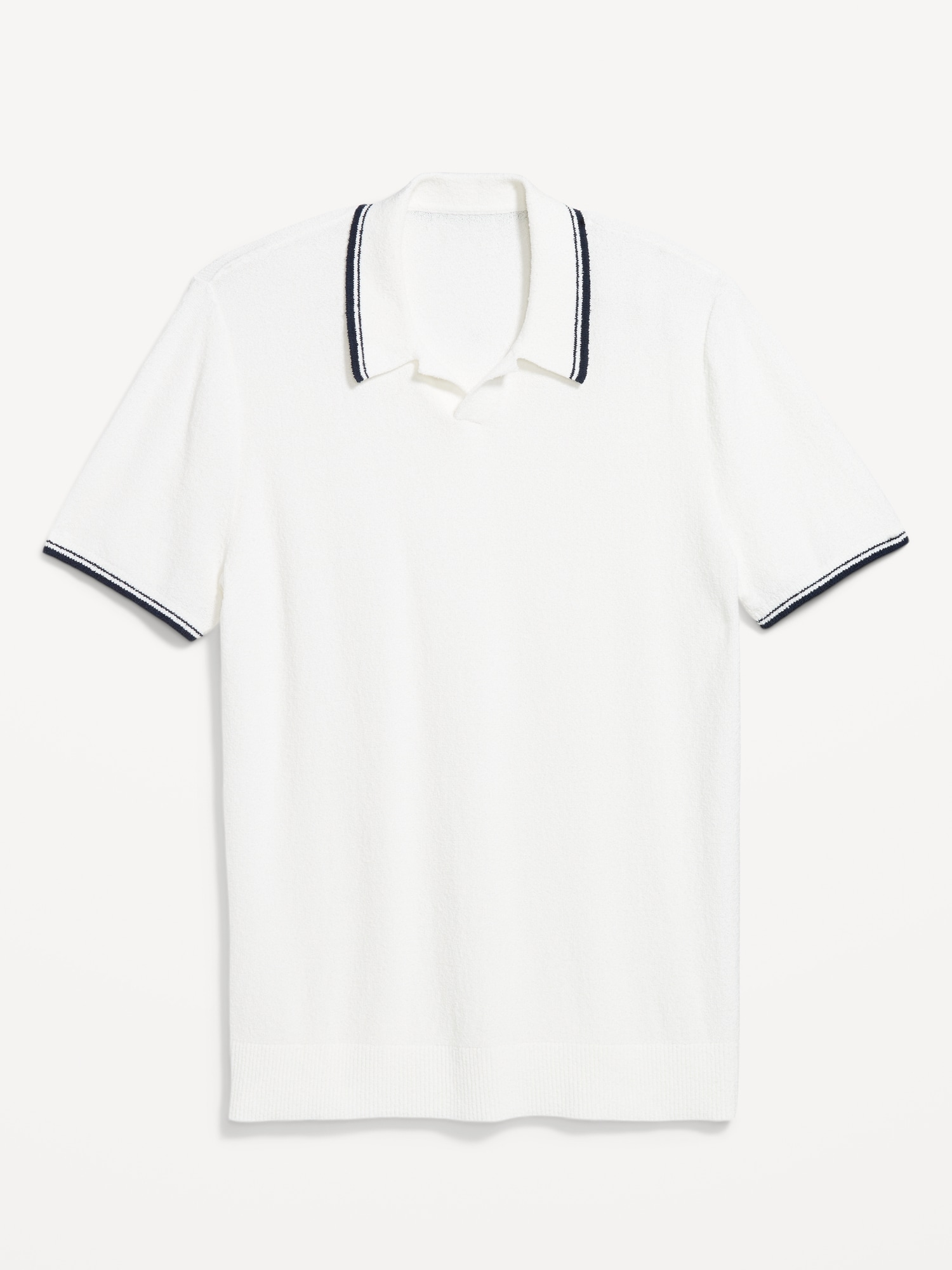 Tipped Collar Polo Sweater: spread collar, short sleeves, buttoned placket, pullover style, #802042